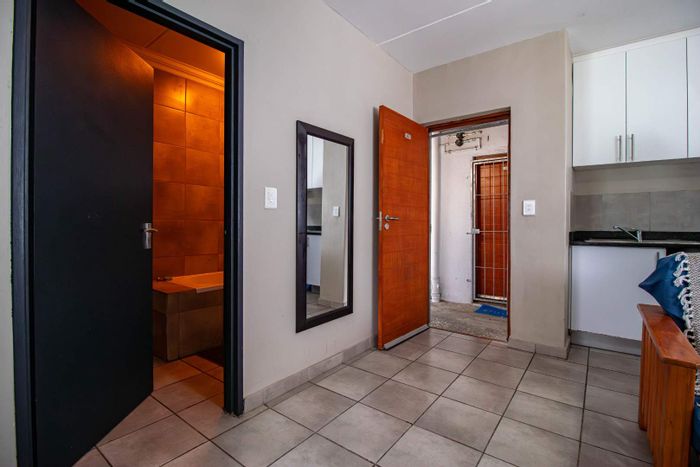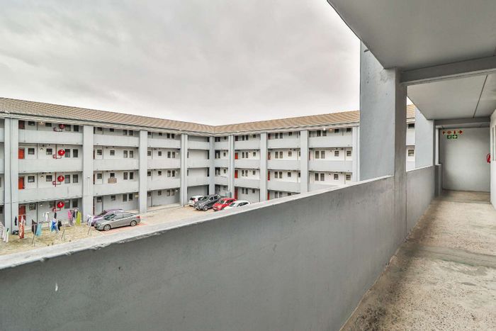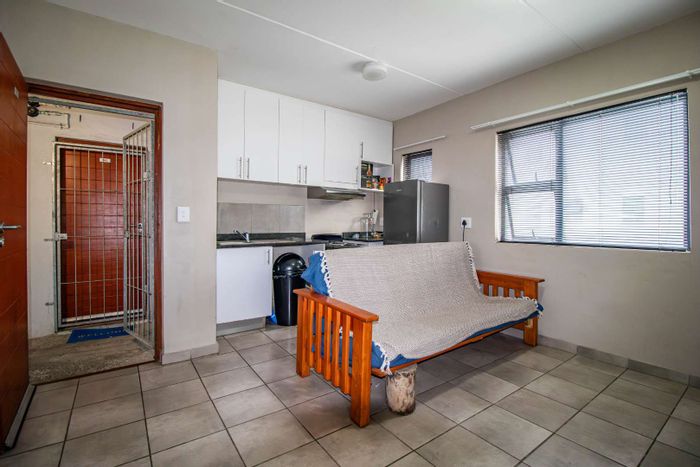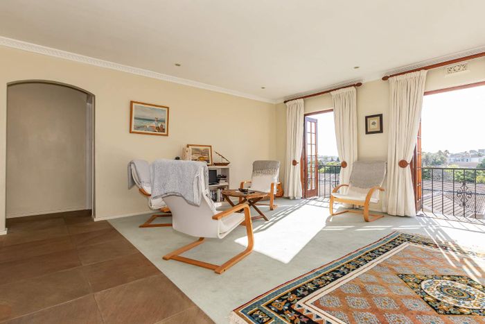Morning-lit east-facing apartment with patio views of the Hottentot Holland Mountains in Claremont, open-plan living with American shutters, pool, gym and biometric access. 2 beds, 1.5 baths, 2 parking.