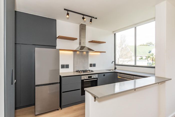 Move-in ready, newly renovated apartment with lovely mountain views in a well-established block offering leafy gardens, pool and braai area — two beds, two baths and dedicated parking.