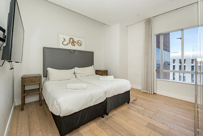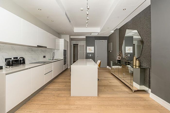 City-edge apartment steps from UCT, Baxter Theatre and Riverside Mall, featuring a spacious lounge with enclosed balcony, resident library and lounges, 24-hour security, fibre, one bed, bath, automated garage.