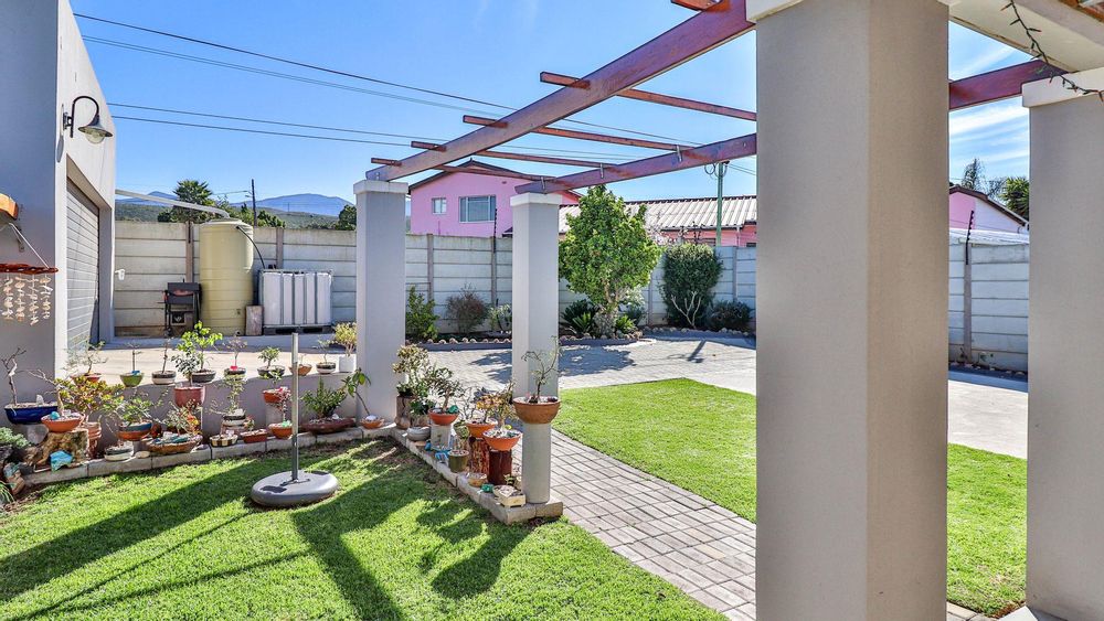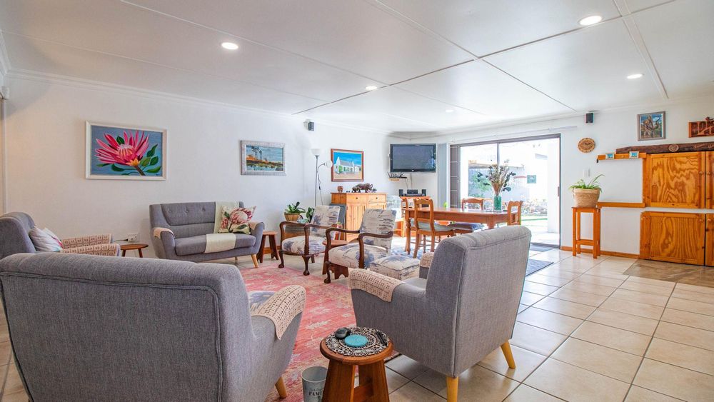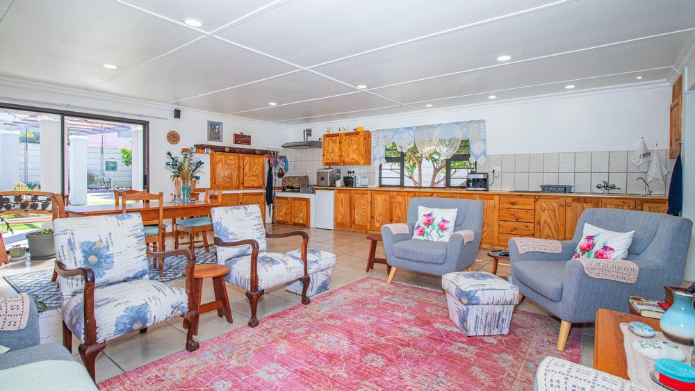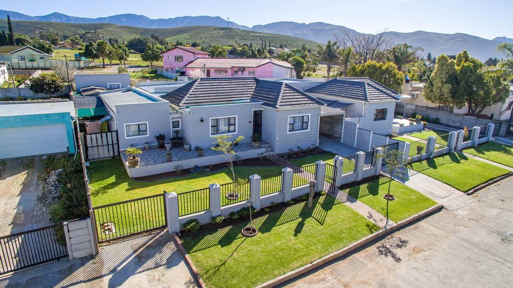 Nestled against the stunning Langeberg Mountains, this impeccably maintained home welcomes you through dual automated gates to a manicured lawn and lush, irrigated gardens. The inviting front veranda sets the stage for breathtaking views, leading into a secure foyer and an open-plan living area that seamlessly blends a stylish lounge, dining space, and modern kitchen with a premium Defy stove and ample cabinetry.