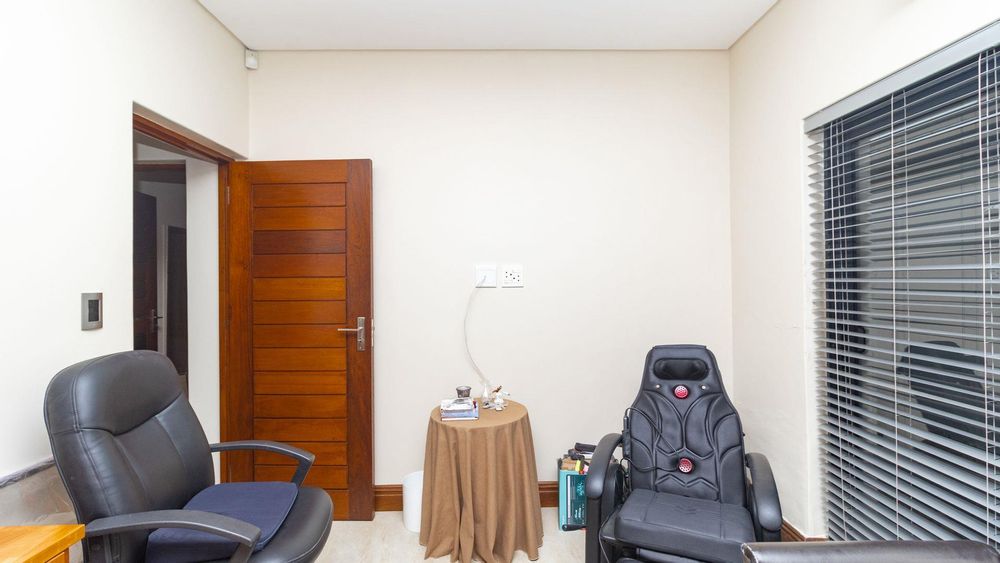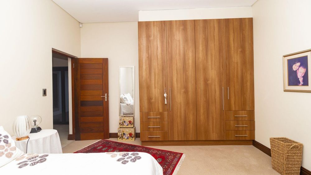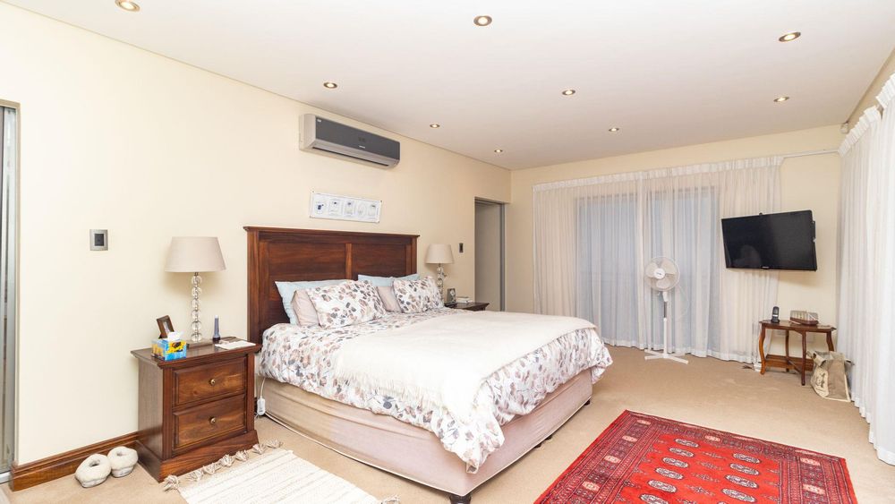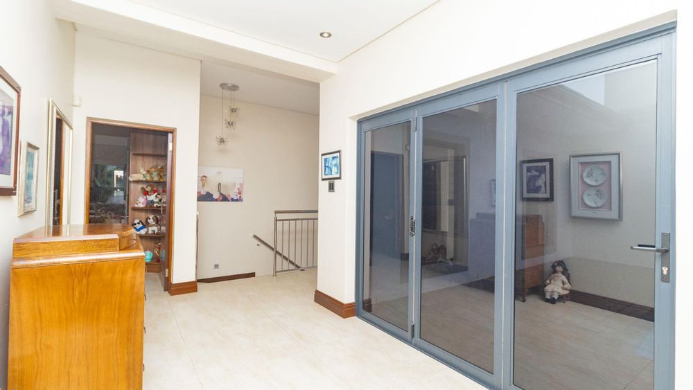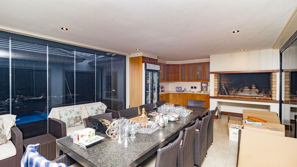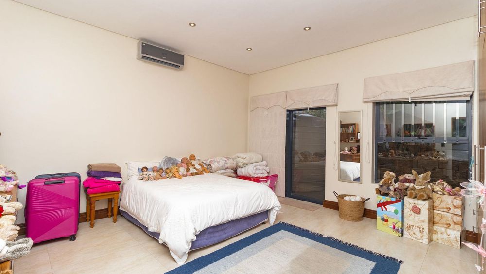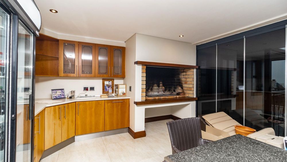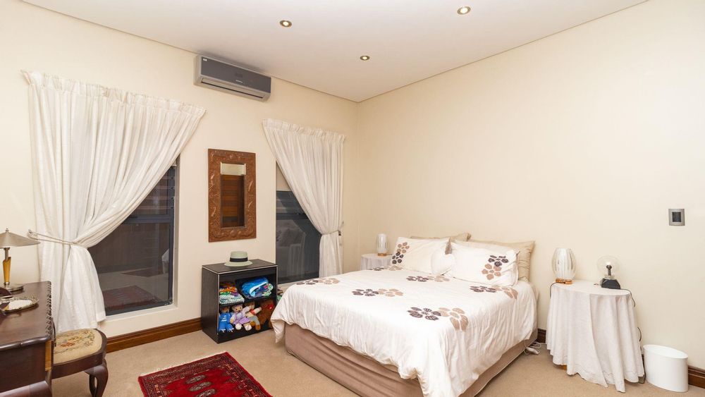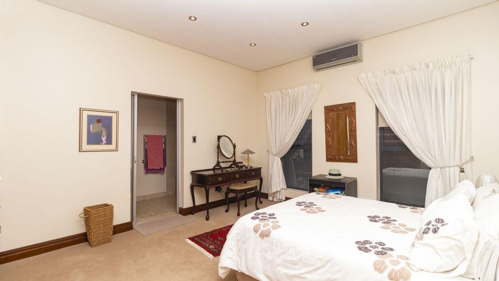 Designed with entertaining in mind, the living areas open onto a private, wind-sheltered courtyard and sparkling pool. There’s a built-in indoor braai for easy year-round entertaining and a jacuzzi on the patio that invites you to relax and unwind. A guest cloakroom nearby adds extra convenience.