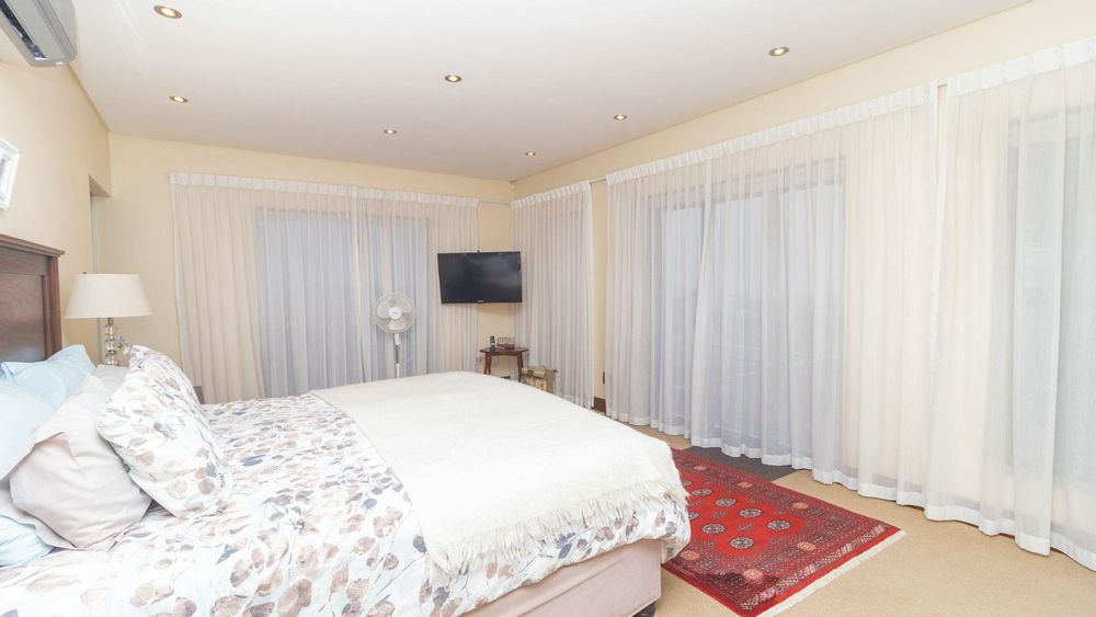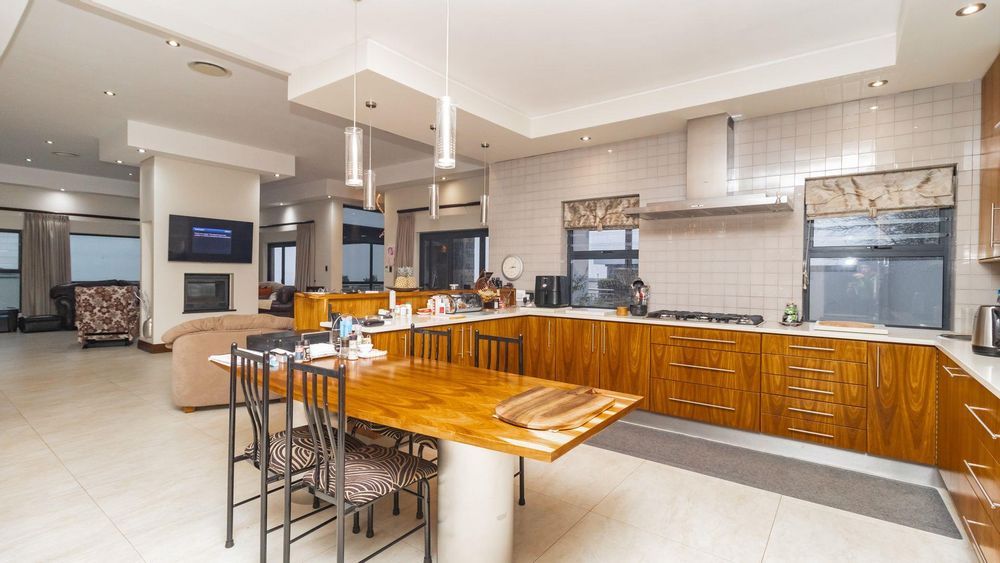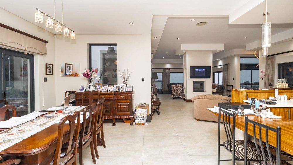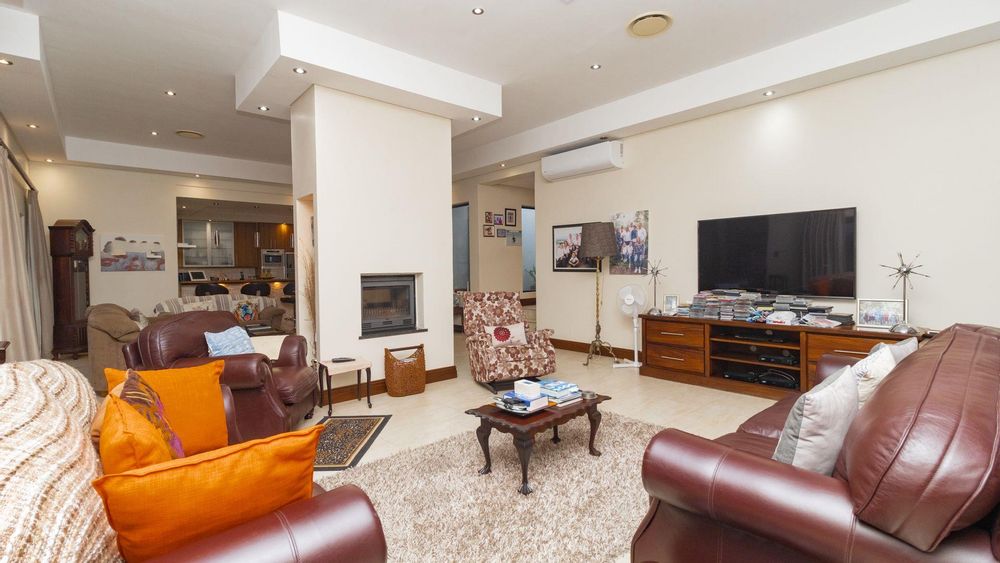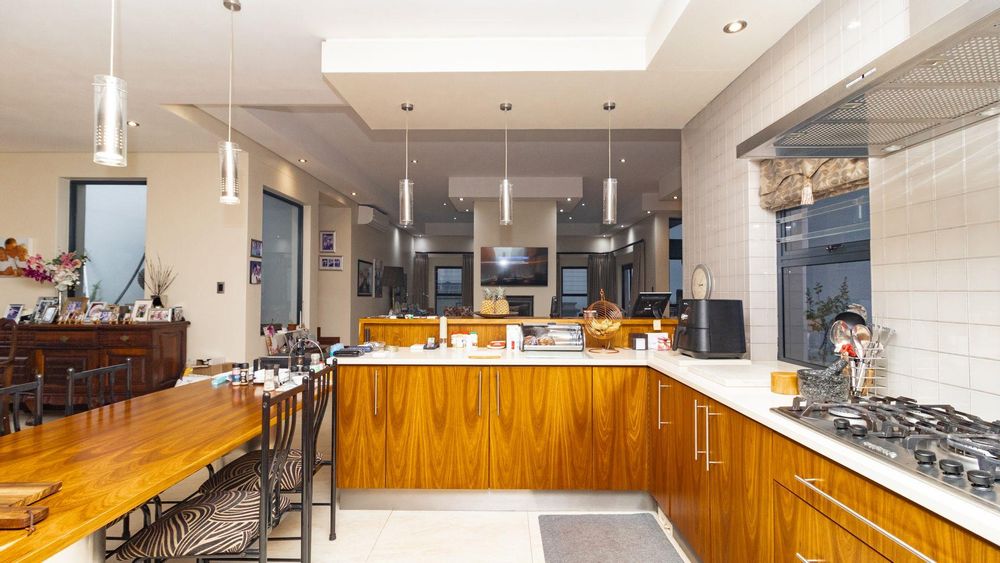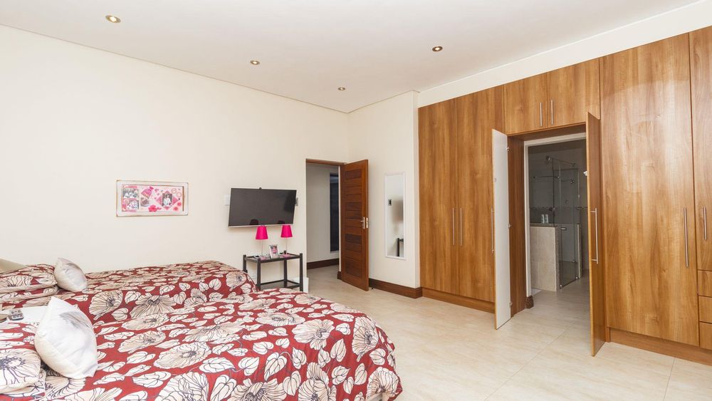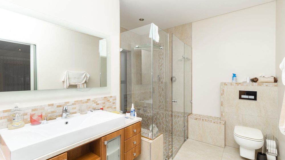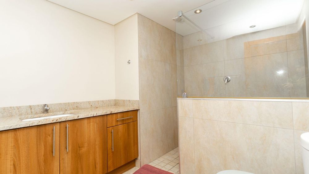 Designed with entertaining in mind, the living areas open onto a private, wind-sheltered courtyard and sparkling pool. There’s a built-in indoor braai for easy year-round entertaining and a jacuzzi on the patio that invites you to relax and unwind. A guest cloakroom nearby adds extra convenience.