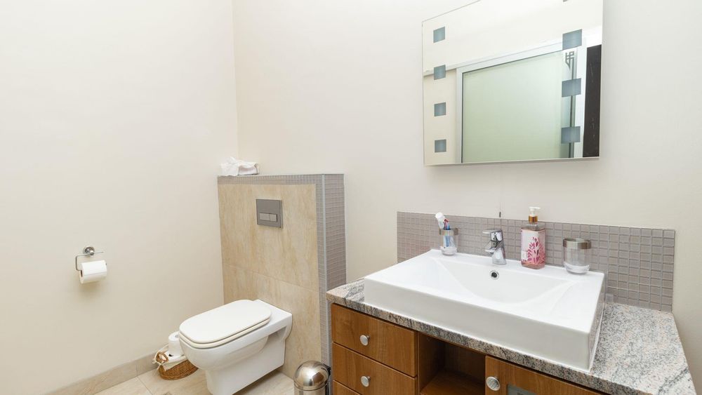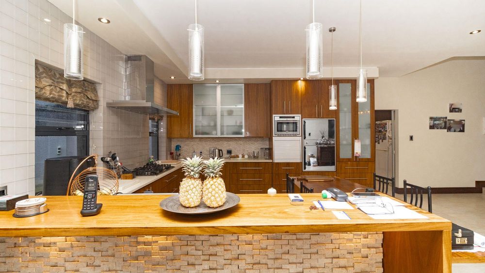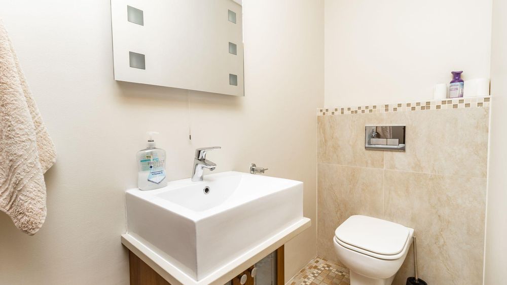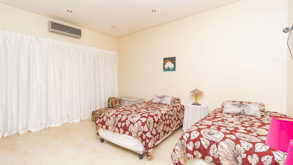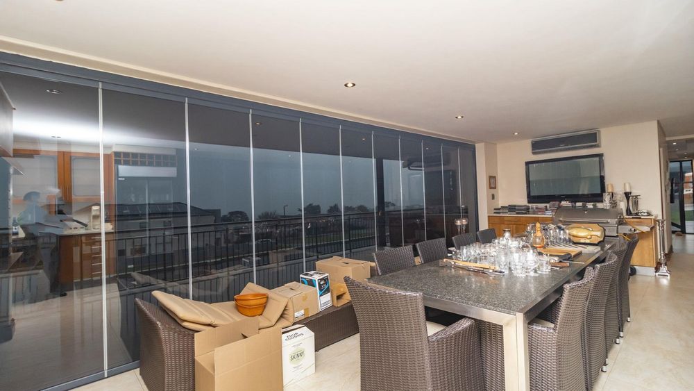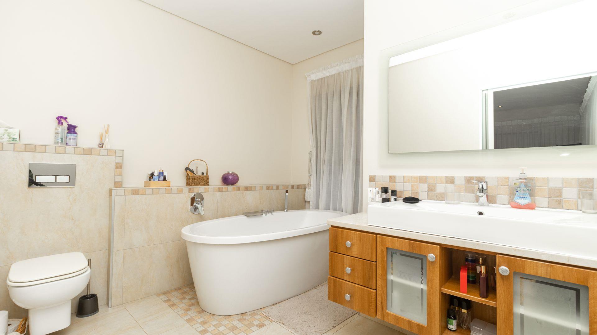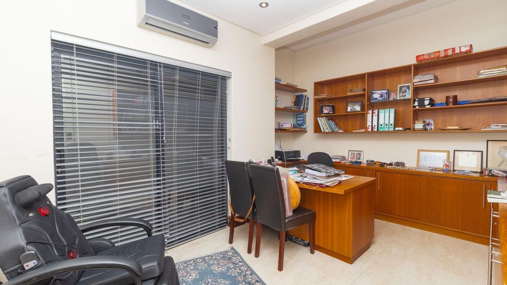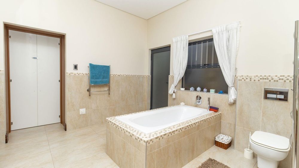 Designed with entertaining in mind, the living areas open onto a private, wind-sheltered courtyard and sparkling pool. There’s a built-in indoor braai for easy year-round entertaining and a jacuzzi on the patio that invites you to relax and unwind. A guest cloakroom nearby adds extra convenience.