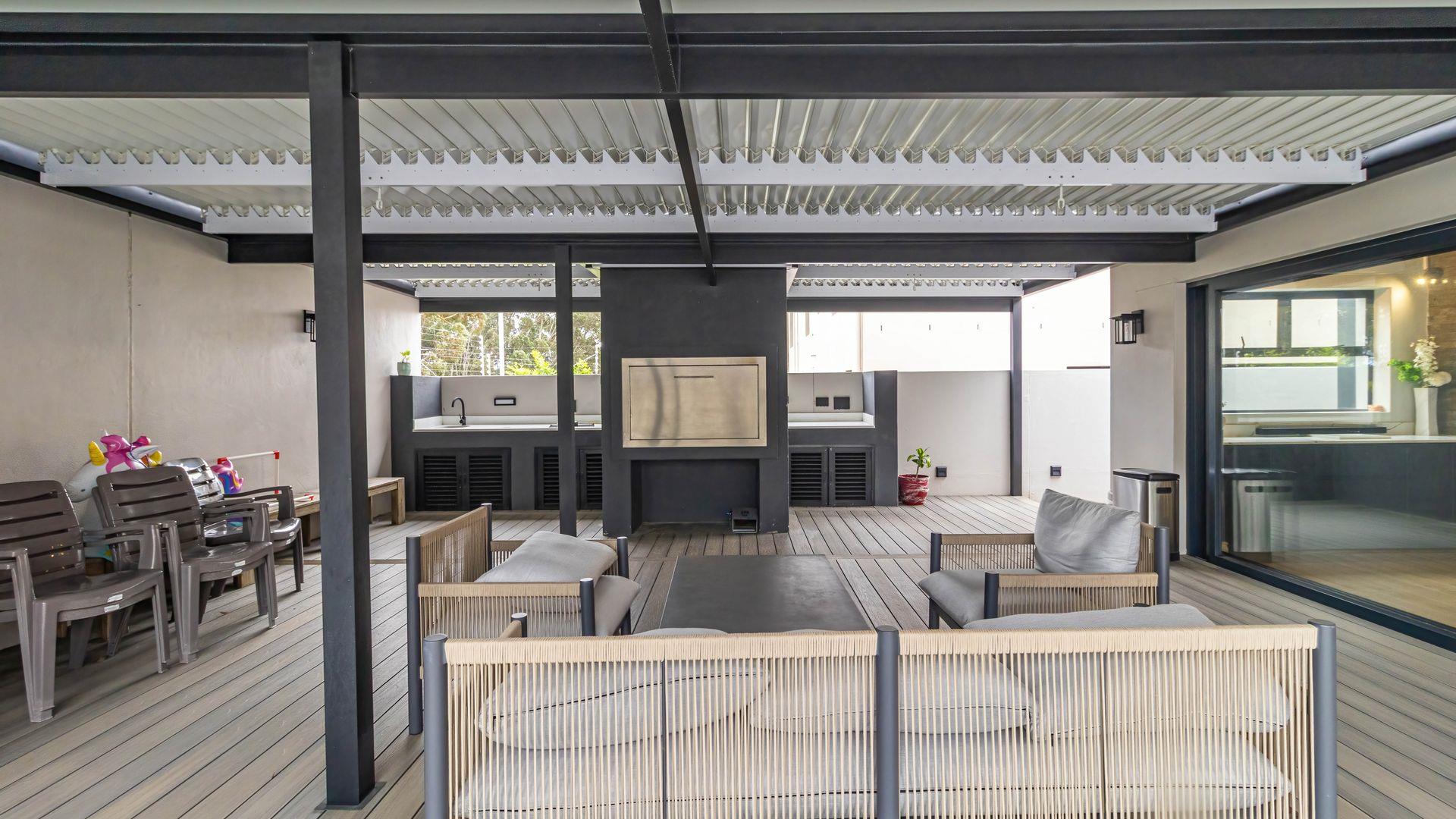 Step outside to your private alfresco oasis: a second undercover patio with built-in braai, cozy lounge space, and views of the heated jacuzzi and sparkling pool—an entertainer’s dream for long summer evenings or relaxed weekend downtime.