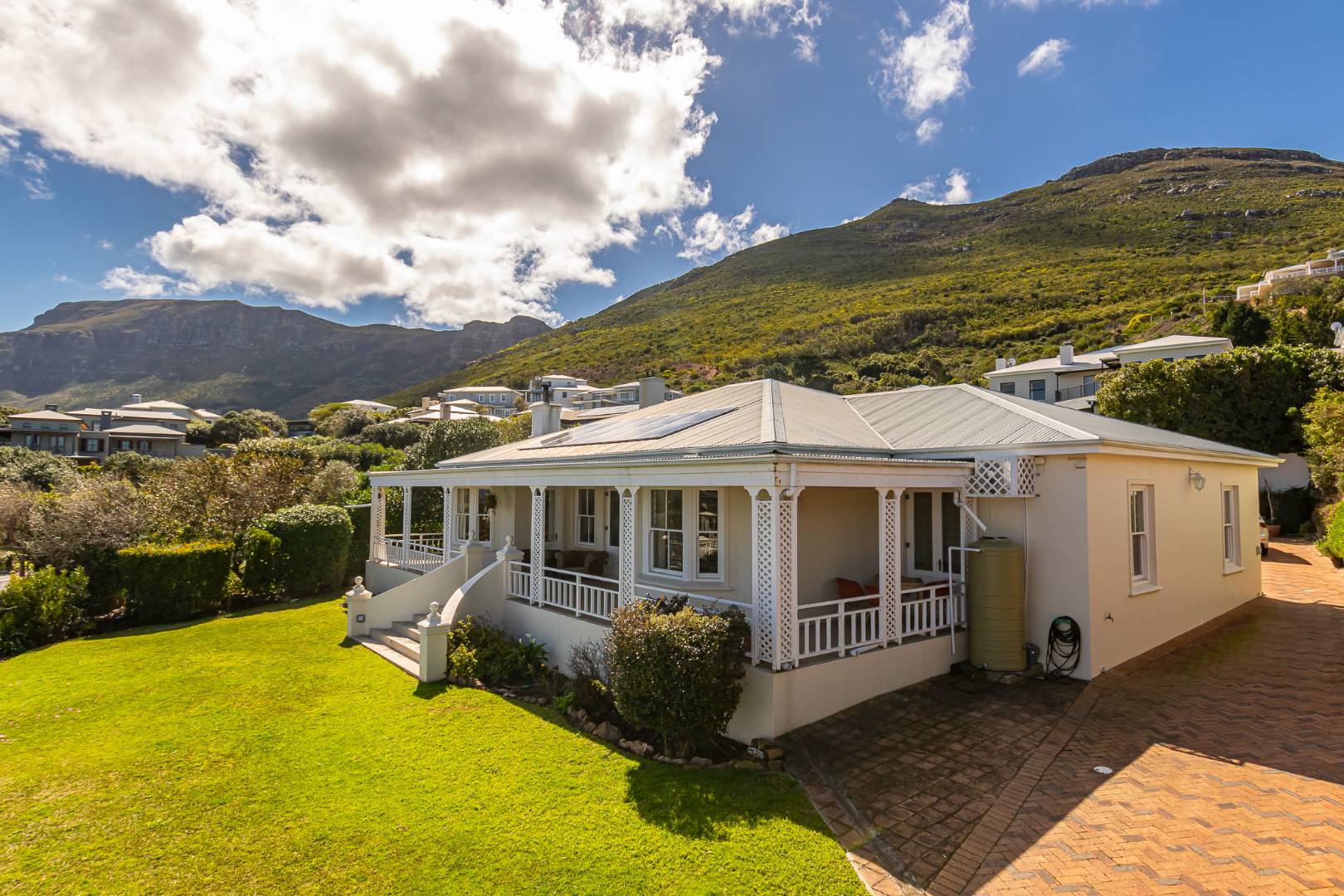 This spacious and inviting home offers breathtaking sea and mountain views from a wrap-around veranda, perfect for enjoying the outdoors. Inside, you'll find a generous kitchen with a separate scullery, providing plenty of space for culinary endeavors.