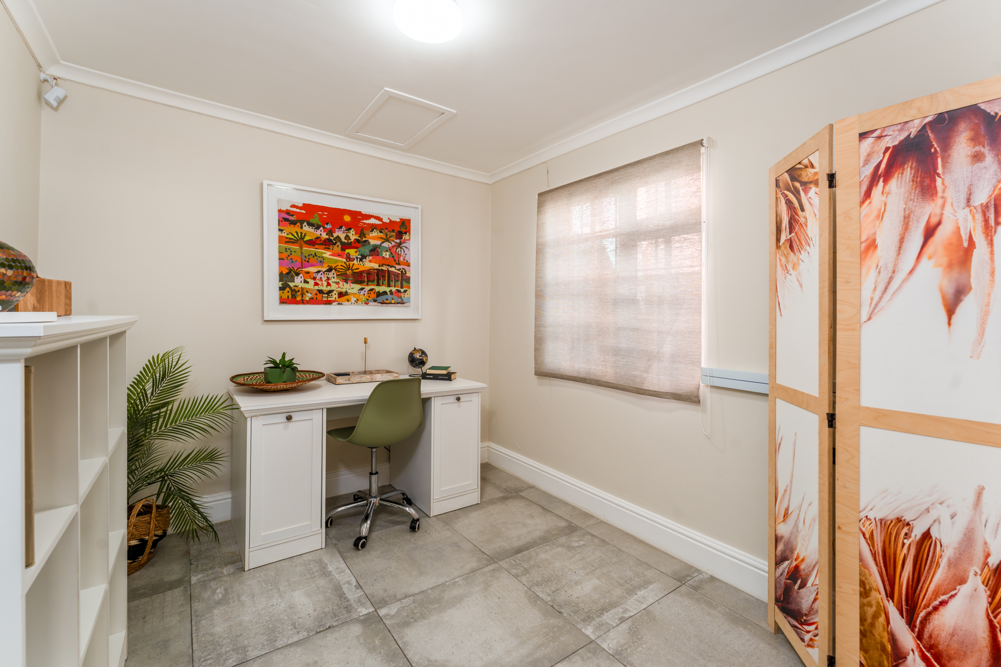 Downstairs, a dedicated home office provides an ideal space for remote work, creative projects, or could easily double as a third bedroom if required.
