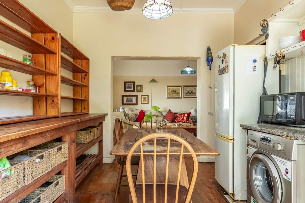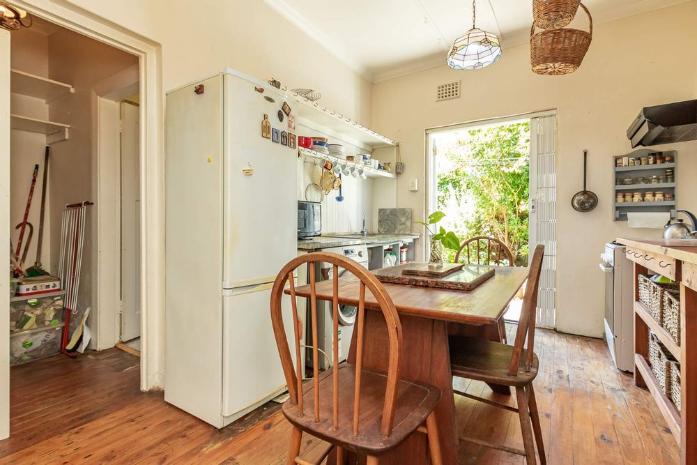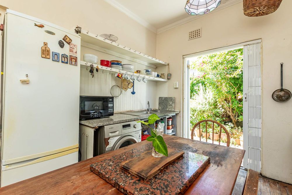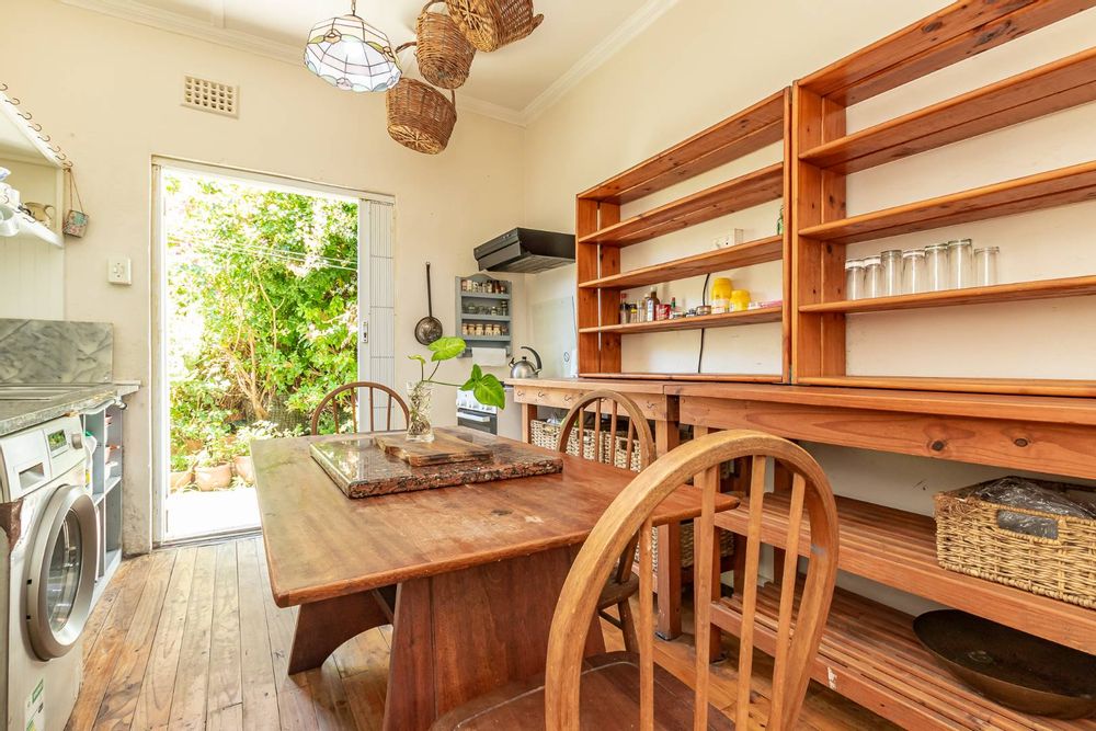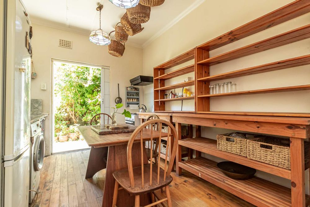 Sunny lounge, open plan to kitchen with doors leading to courtyard.