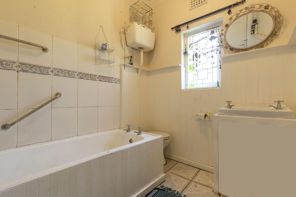 1 bathroom with bath, shower over bath, basin, and toilet.