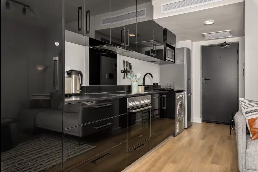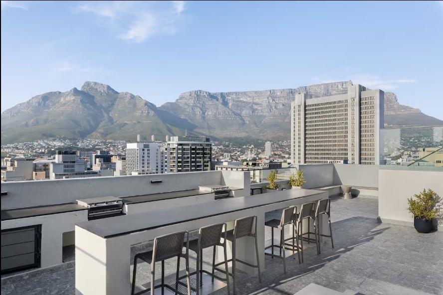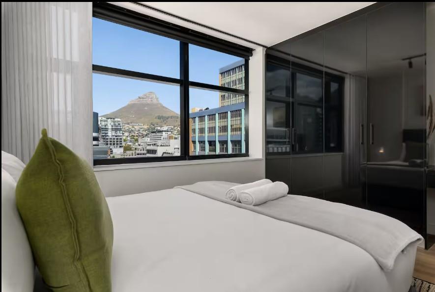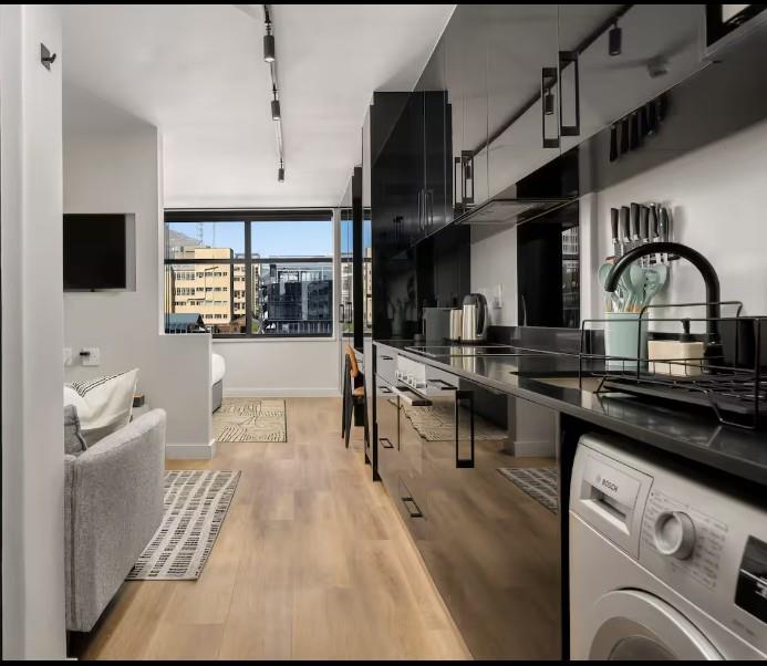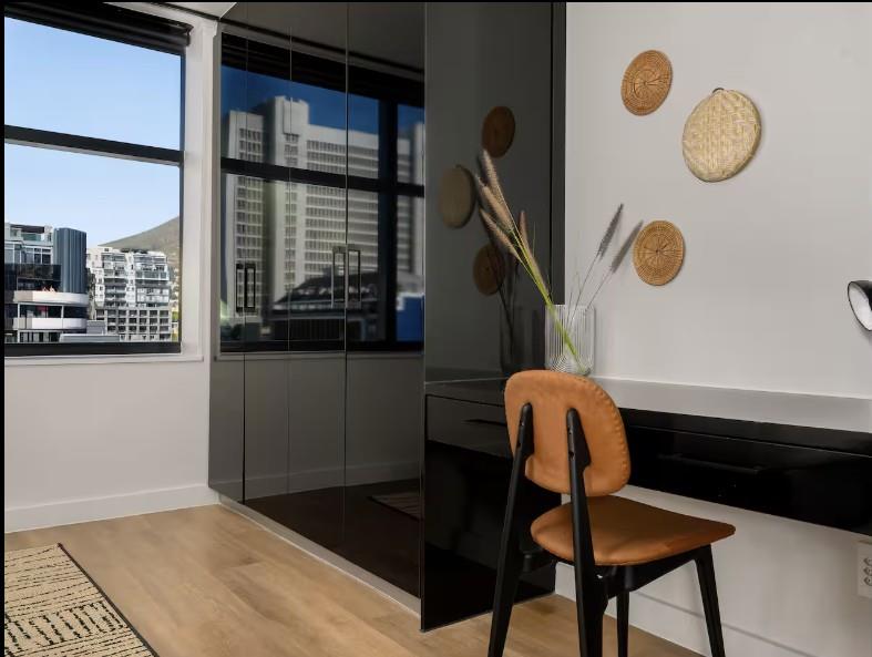 The interior exudes understated elegance, featuring premium finishes, a streamlined designer kitchen, and an intelligent open-plan layout that maximizes space, light, and style. Floor-to-ceiling glass invites the iconic Cape Town landscape indoors, creating a sense of serenity and opulence rarely found in studio living.