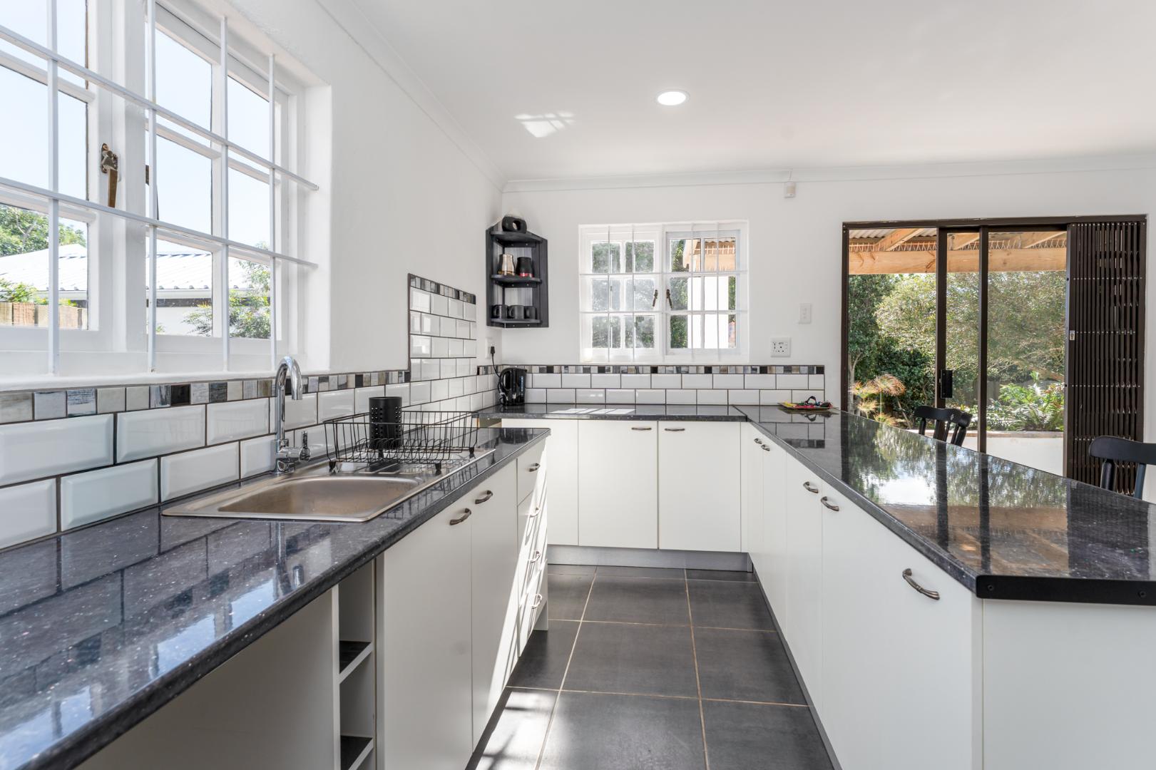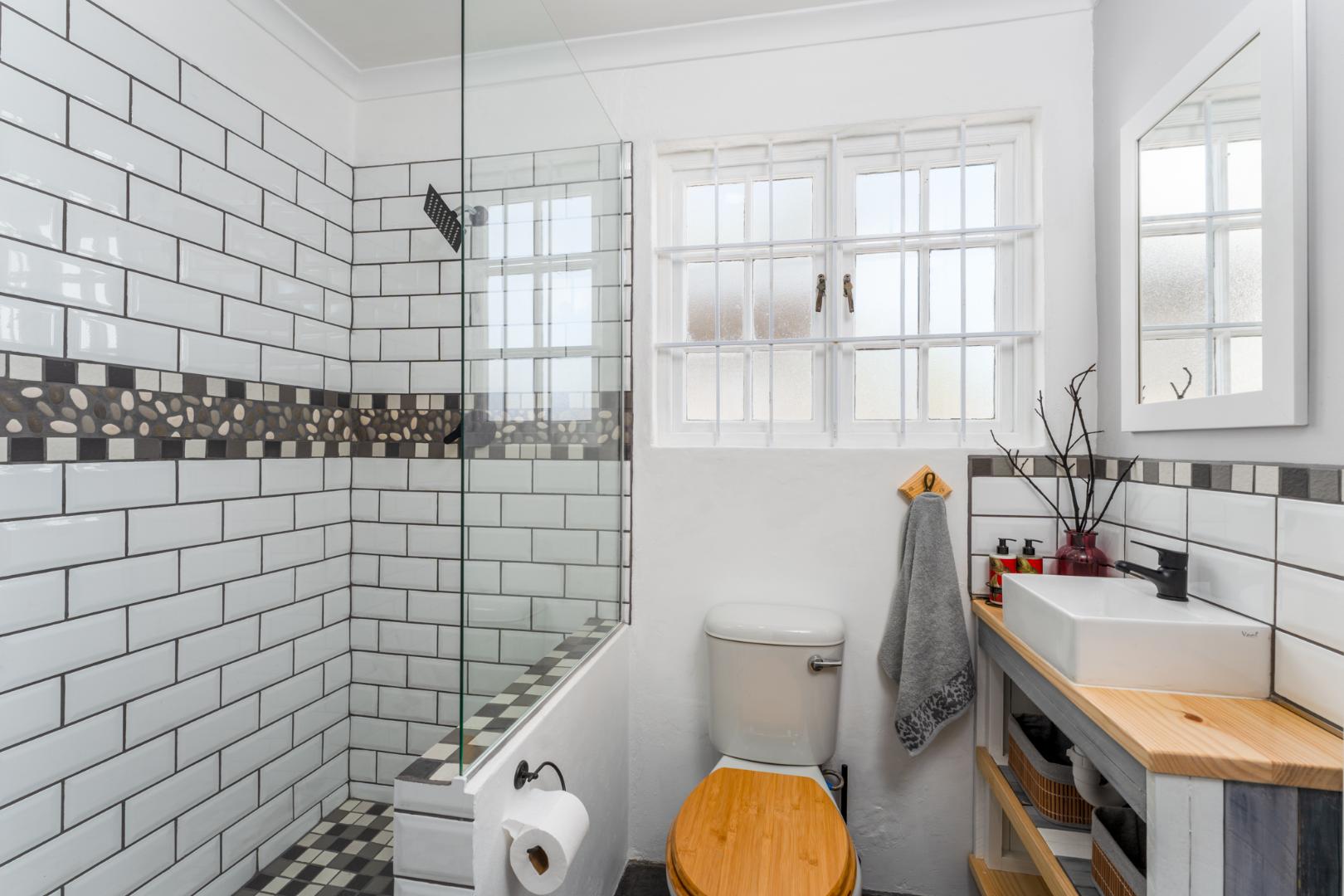 The geyser is a gas geyser saving on your electrical consumption. Alarm system and external sensor lights for security.
