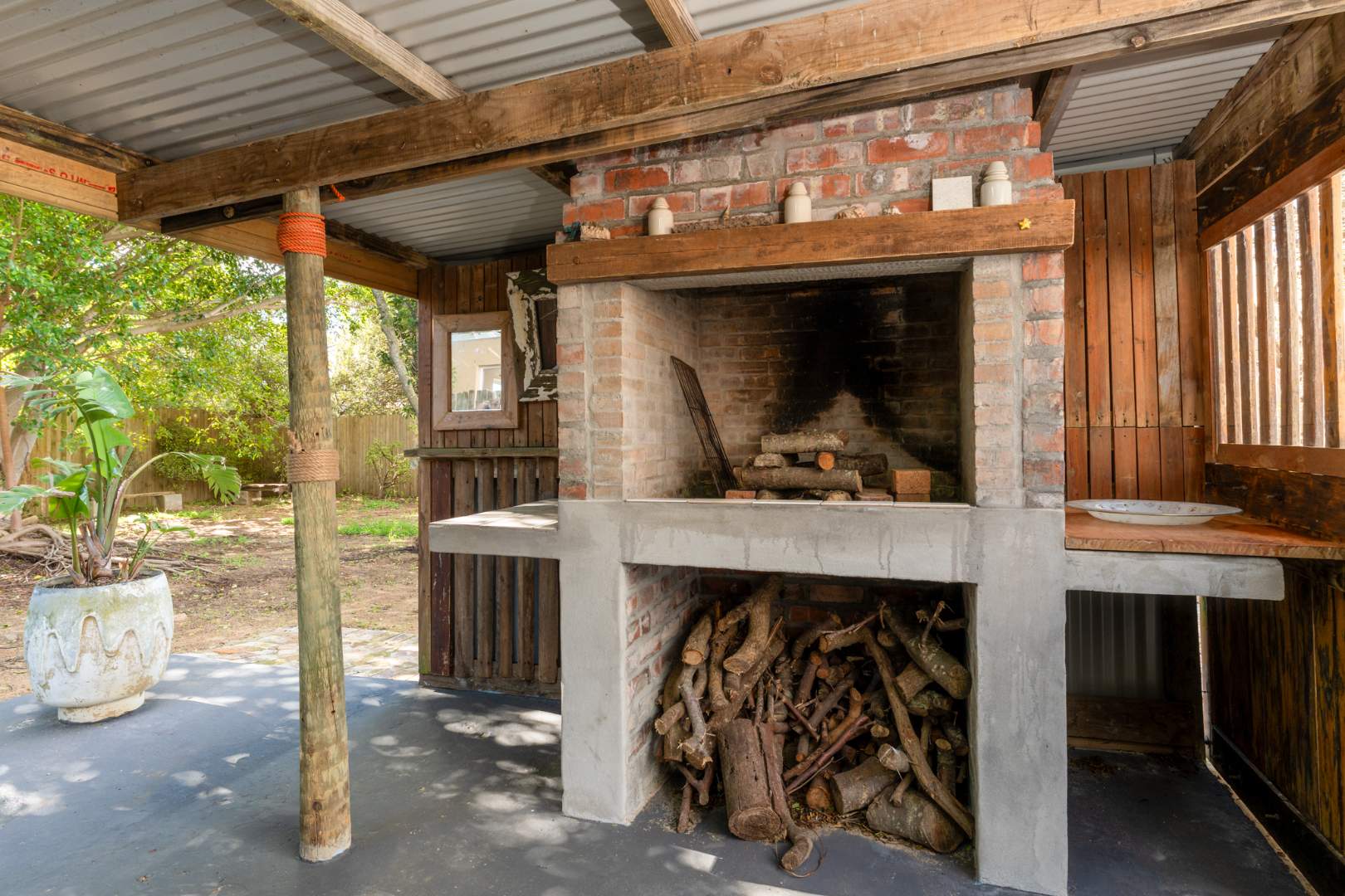 Now for a special treat the home comes with the most exquisite outdoor entertainment area covered with built in braai and comfortable seating. Enjoy entertaining in all seasons.