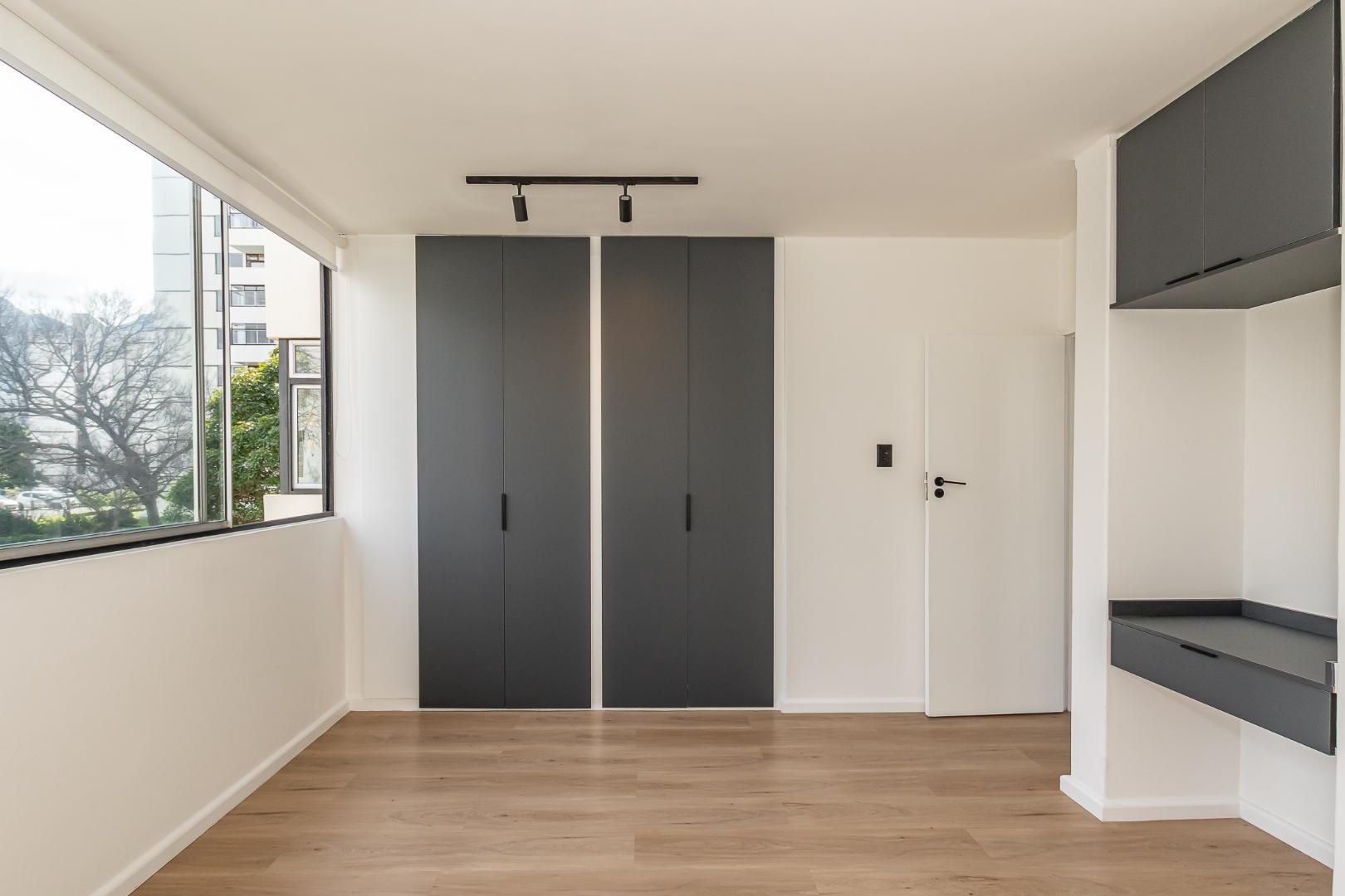 This well-known block offers a lift, large leafy gardens, Braai area and a Swimming pool for the residents. Bring your suitcases and move right in! You will be the first to enjoy a brand-newly renovated unit with brand new appliances too. The finishes are stylish and well chosen.