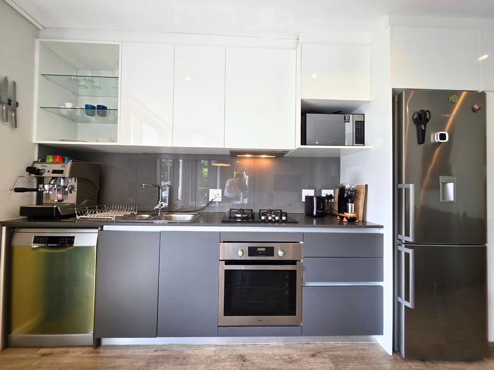 Both bedrooms feature built-in cupboards, and the apartment includes two modern bathrooms for added convenience. The kitchen is fitted with a gas hob—perfect for both daily cooking and entertaining.