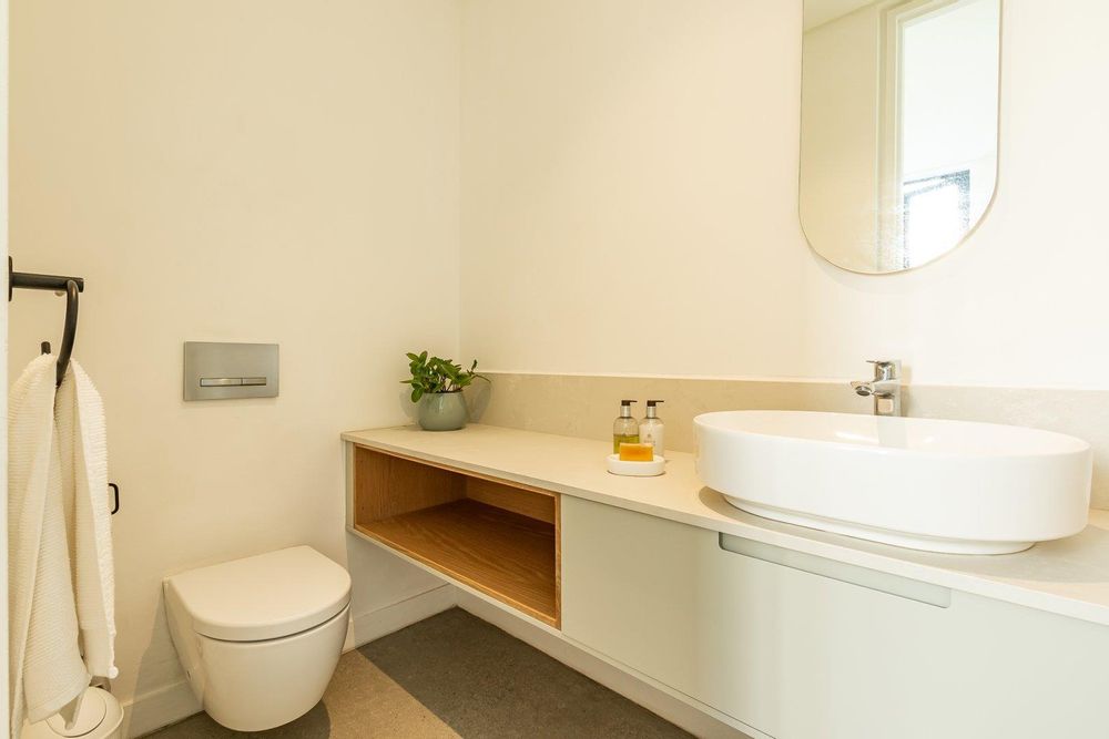 Adjacent to the kitchen is a separate scullery, complete with plumbing for a dishwasher, and even a guest toilet.