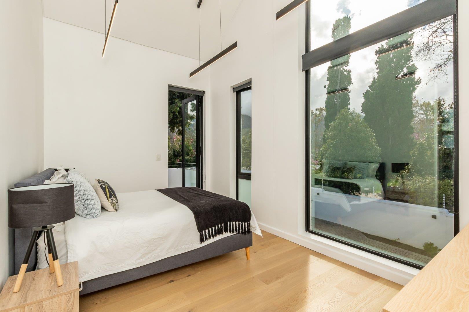 The modern house, boasting 3 bedrooms and 2.5 bathrooms, is situated in the Upper Constantia neighbourhood.