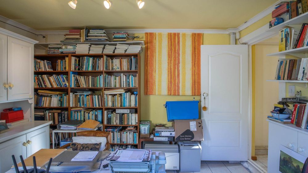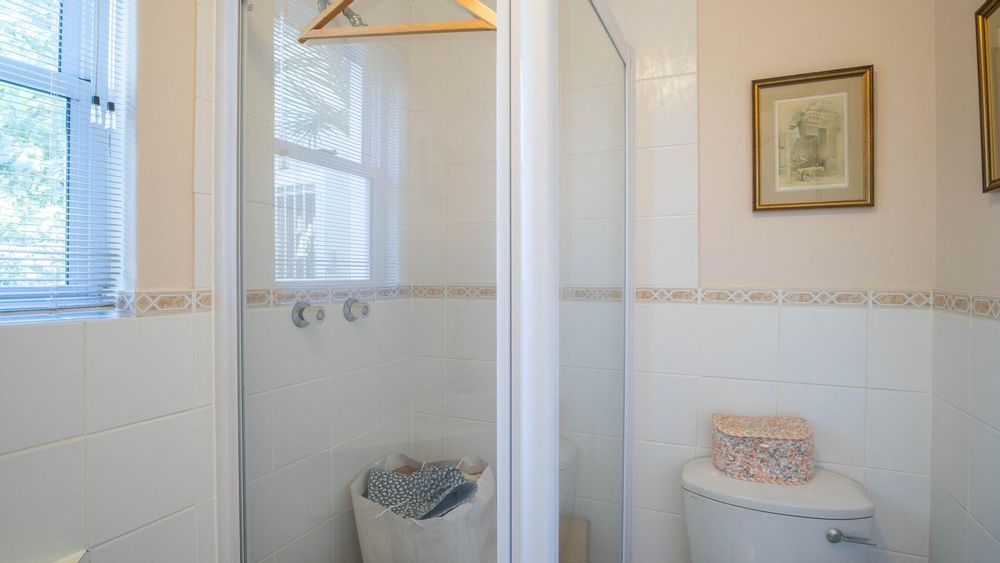 In addition to the main living quarters, there is a large separate office that can easily be converted into a fourth bedroom. This versatile space features doors that lead outside, as well as a guest bathroom equipped with a shower, toilet, and basin.