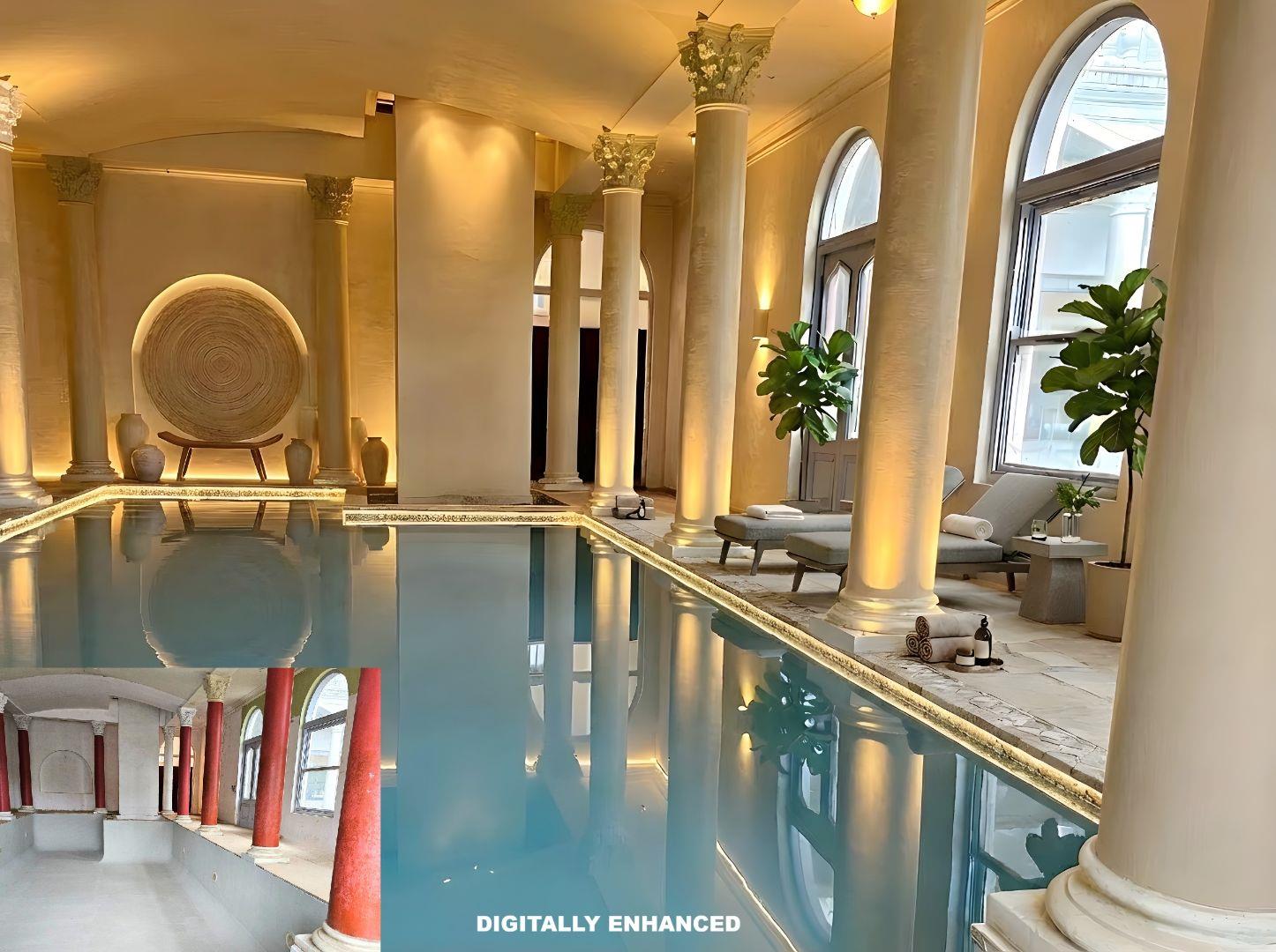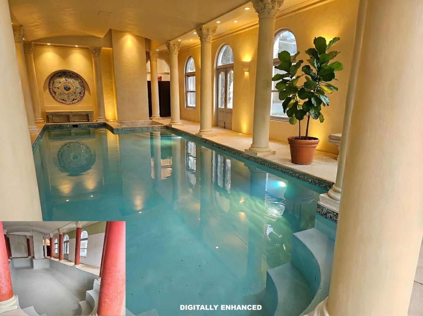 The indoor Roman pool, surrounded by striking columns, is the entrance to the relaxation and leisure wing. Leading off from this indoor pool, you will find a jacuzzi and sauna, all of which open onto the outdoor pool, entertainment area and three viewing decks.