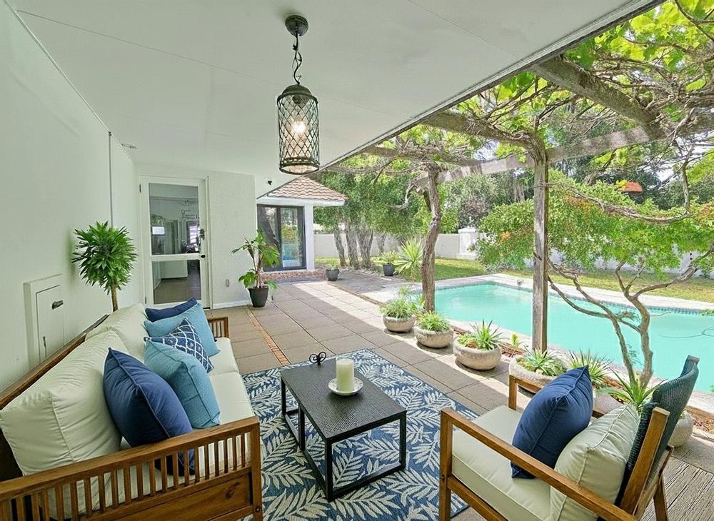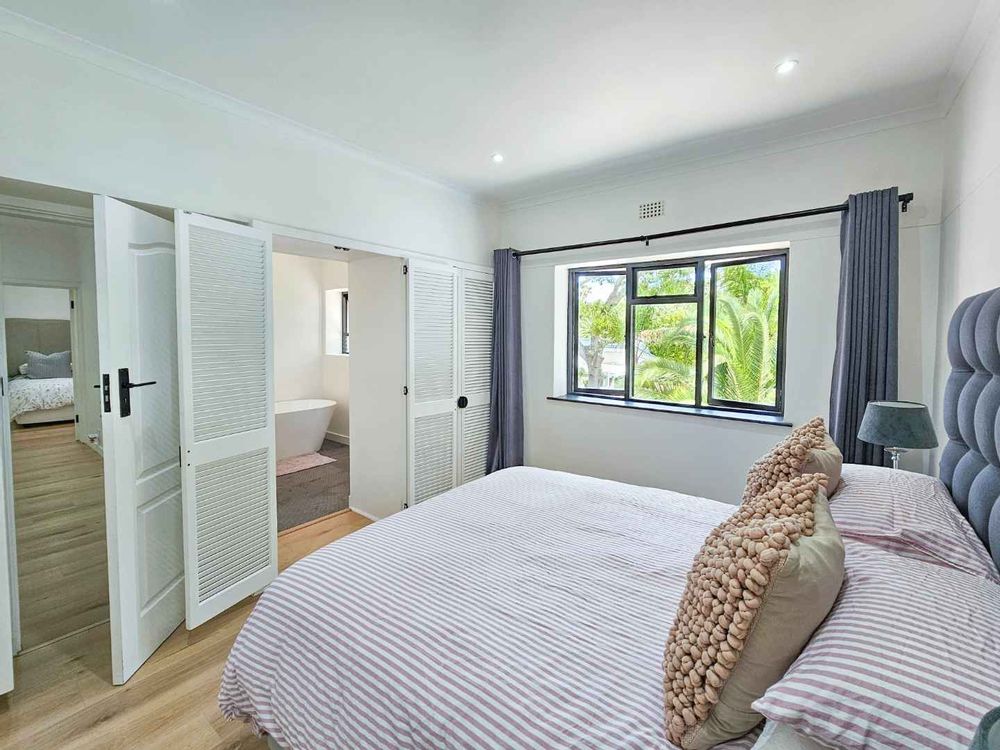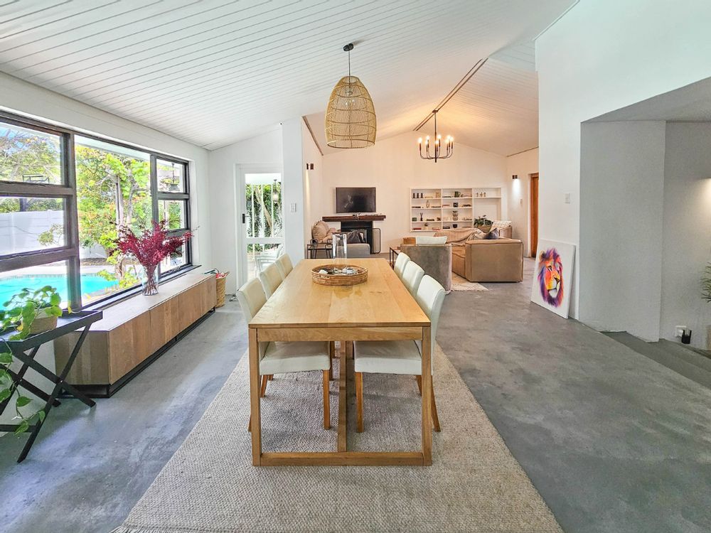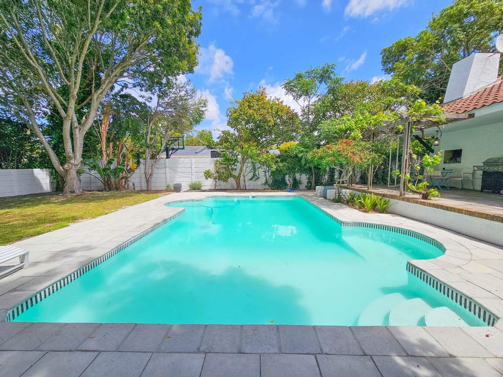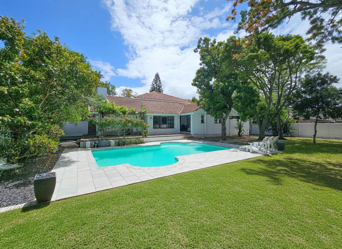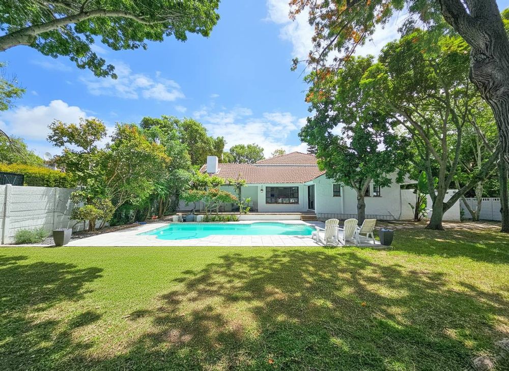 Superb spacious family home, located in a quiet, leafy-green pocket of Belle Constantia close to some of the best schools in the country and laid out for entertaining and comfortable family living. This sensational home has spacious open-plan lounge with fireplace, dining, kitchen and snug, five bedrooms all with ensuite bathrooms, guest toilet, patio with built-in braai, large swimming pool, double garage, plenty of parking, gardens with lush lawns and established trees, and utility courtyard.