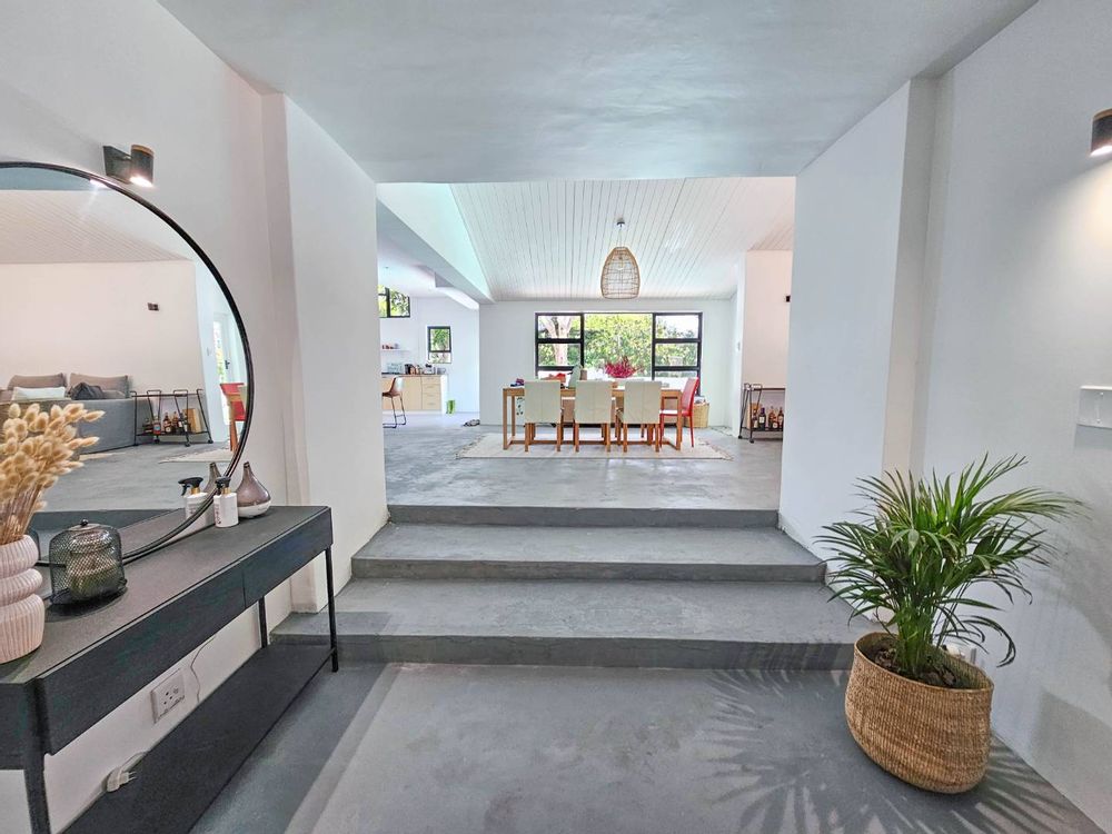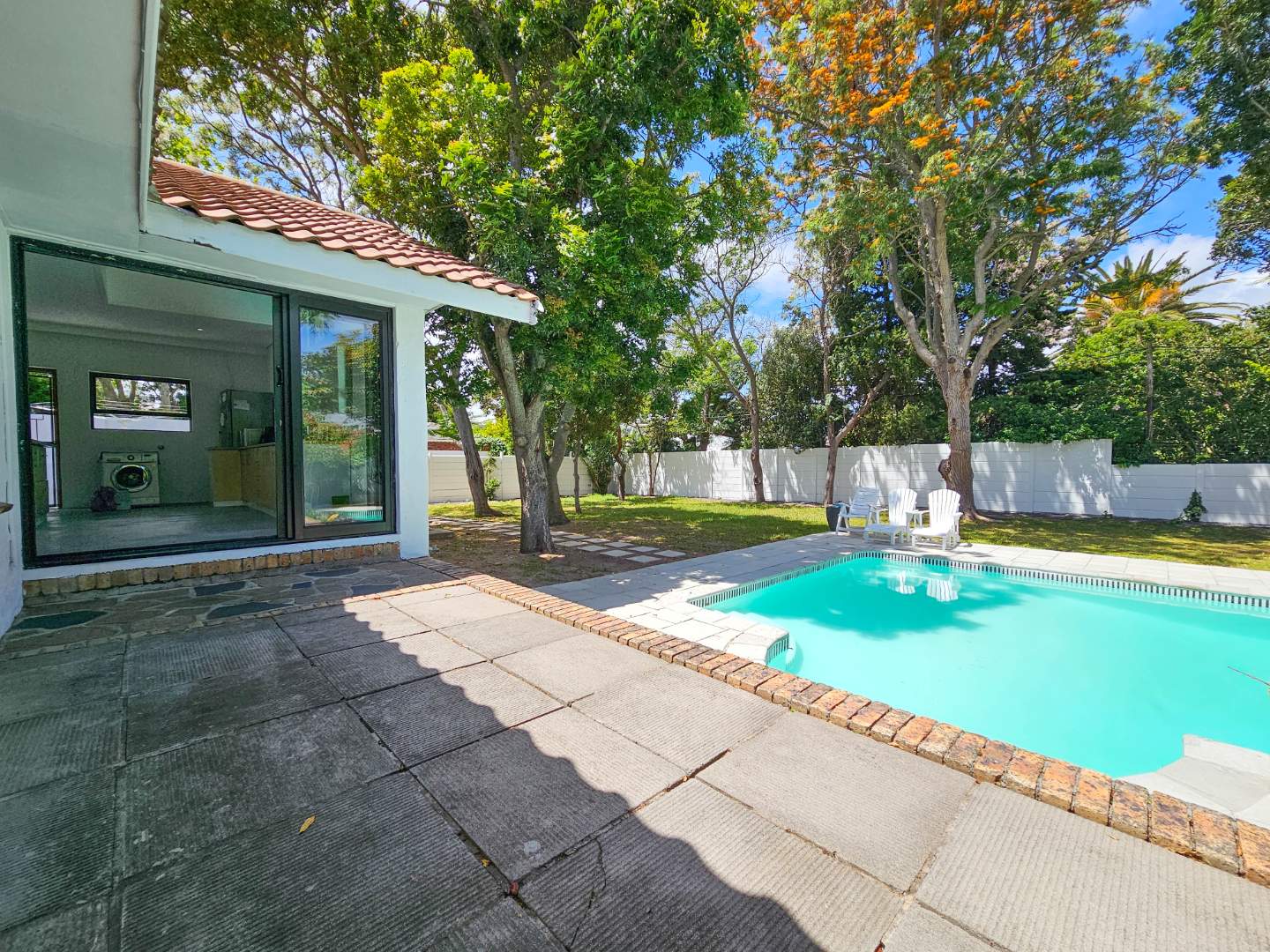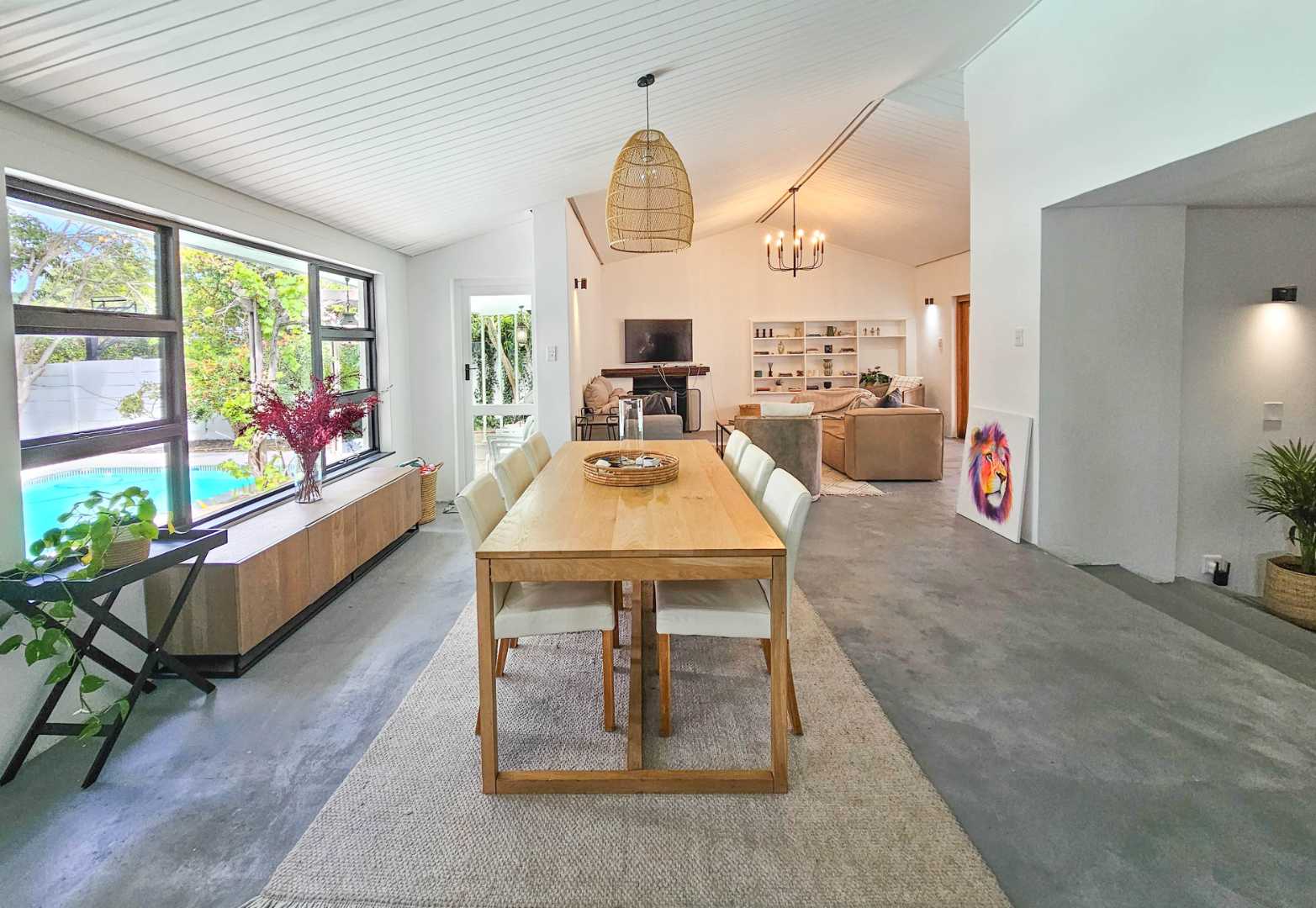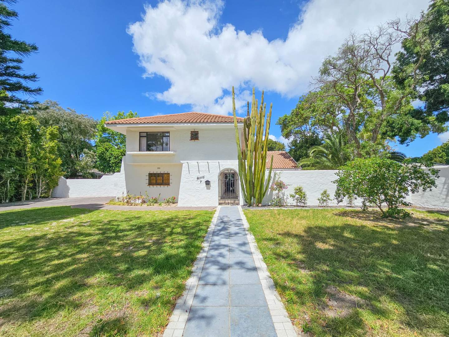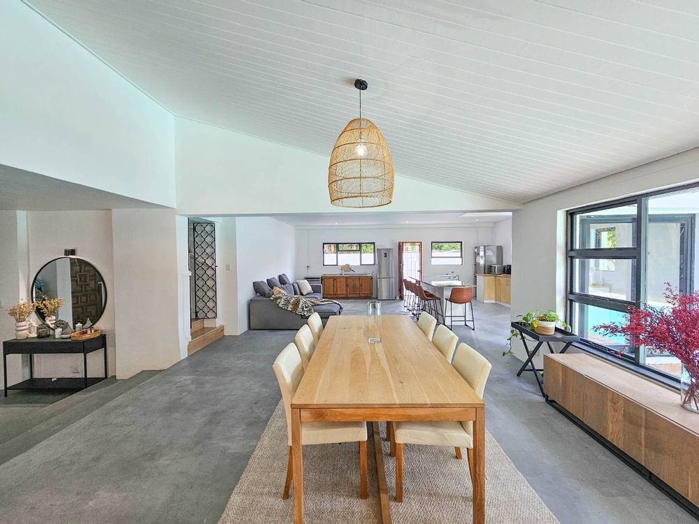 Superb spacious family home, located in a quiet, leafy-green pocket of Belle Constantia close to some of the best schools in the country and laid out for entertaining and comfortable family living. This sensational home has spacious open-plan lounge with fireplace, dining, kitchen and snug, five bedrooms all with ensuite bathrooms, guest toilet, patio with built-in braai, large swimming pool, double garage, plenty of parking, gardens with lush lawns and established trees, and utility courtyard.