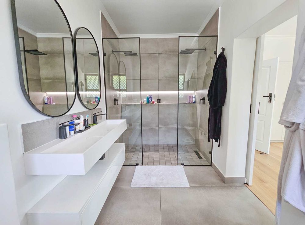 There are four generous bedrooms upstairs that benefit from new flooring. The main bedroom has plenty of built-in cupboards and a beautifully renovated ensuite bathroom with a double shower. The second, third and fourth bedrooms upstairs all overlook the garden and have numerous built-in cupboards with modern fully renovated ensuite bathrooms. The hallway also has a large linen cupboard. The fifth bedroom is downstairs with a separate entrance and private courtyard. This bedroom could be utilised as an Airbnb rental or converted into a flatlet for granny or grandpa.