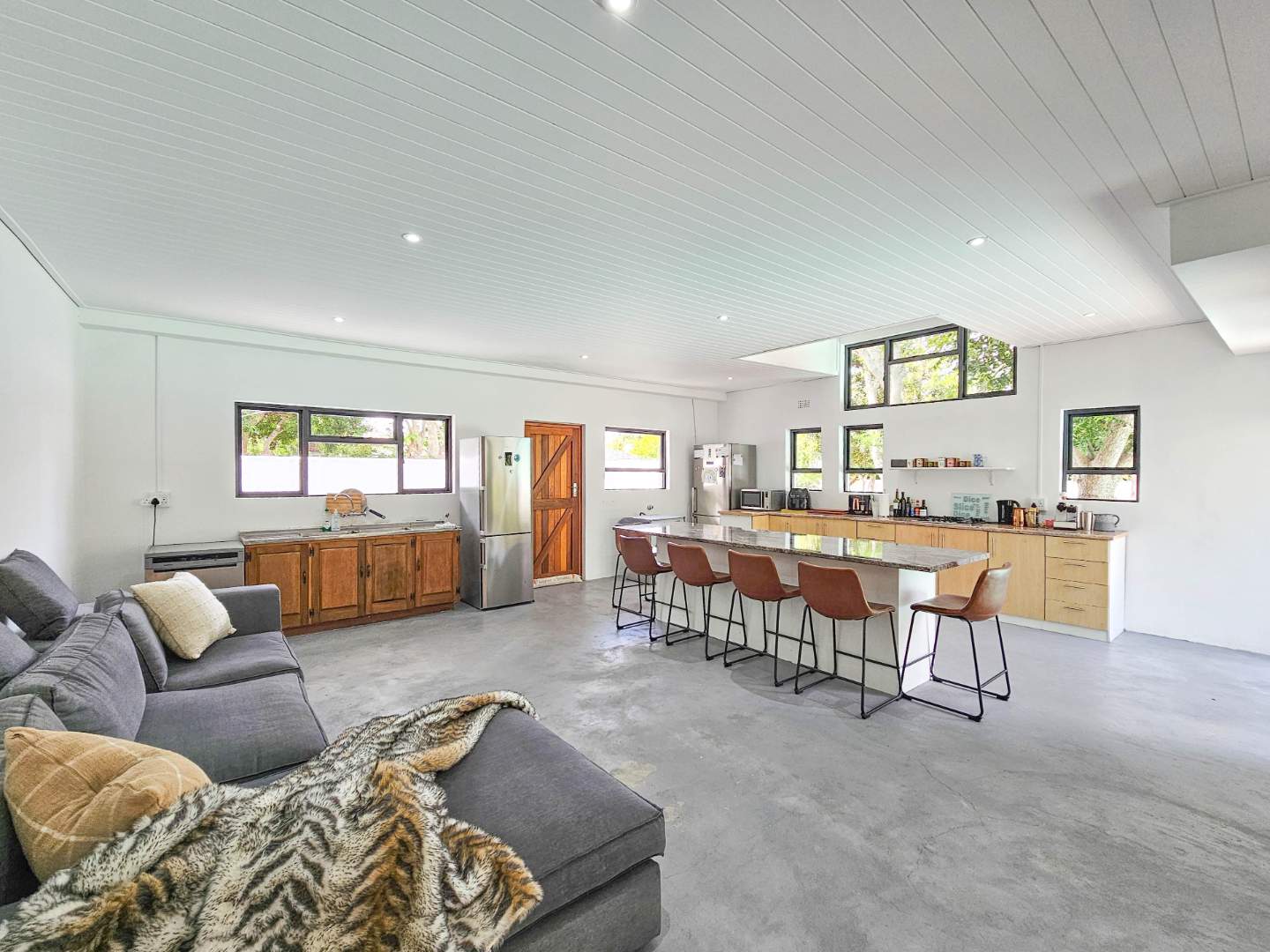 Entering this beautiful home, you walk alongside a sunny internal north-facing courtyard leading into a beautiful entrance hallway with guest toilet and onto the open-plan living area. The generous lounge has a wonderful open fireplace and large sliding doors to the sunny courtyard. The kitchen is the last area to be renovated and benefits from plenty of space for all amenities including a large central island with barstool seating. Entertain your friends while preparing a sumptuous meal. There is a gas hob and plumbing for a dishwasher and a washing machine. The kitchen further benefits from an open-plan snug. This area could be used as a playroom, a second dining space or a study nook.