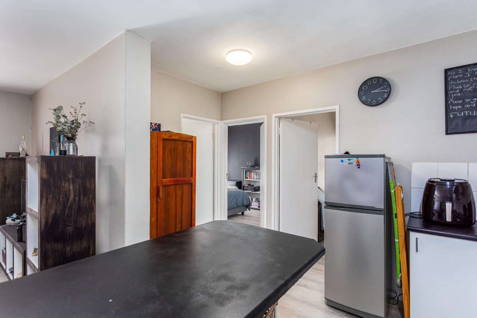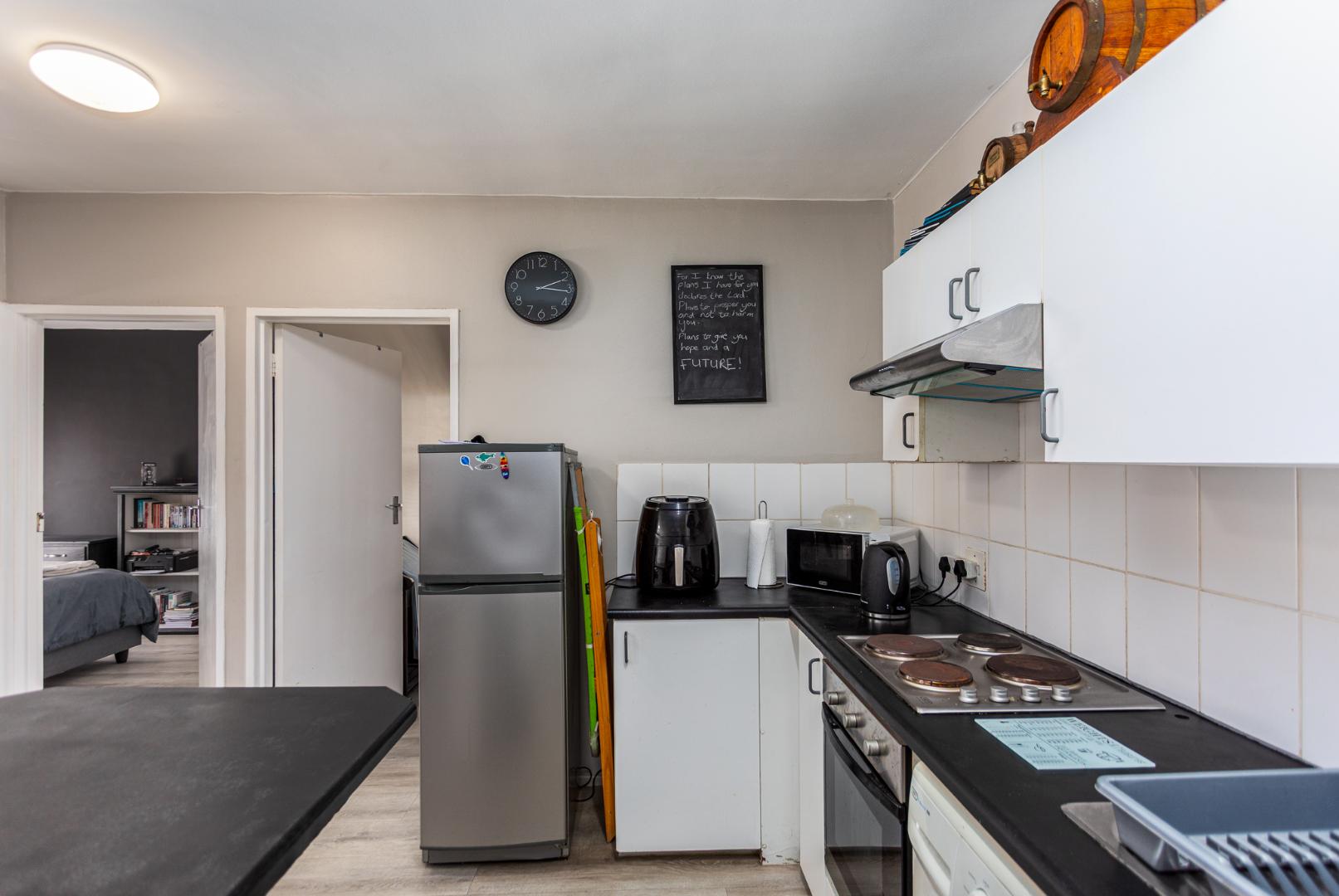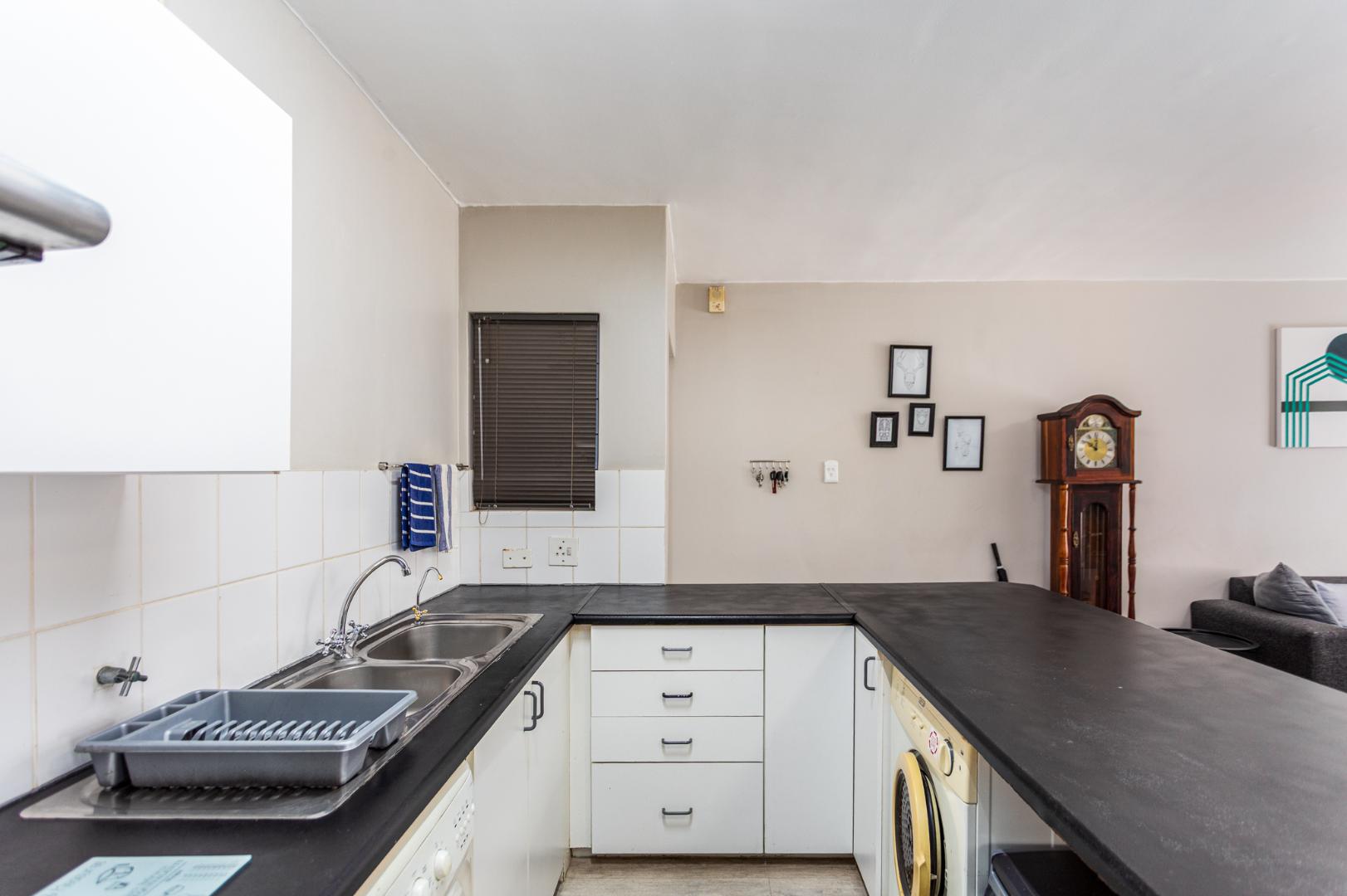 Experience contemporary comfort and effortless living in this stylish ground-floor apartment, perfectly positioned in one of Durbanville’s most desirable areas. From the moment you step inside, you are welcomed by a seamless open-plan layout where the lounge and kitchen blend naturally, creating a light and inviting atmosphere ideal for relaxed daily living or easy entertaining. The kitchen is thoughtfully designed with modern built-in cupboards and practical plumbing points, ensuring both convenience and functionality.