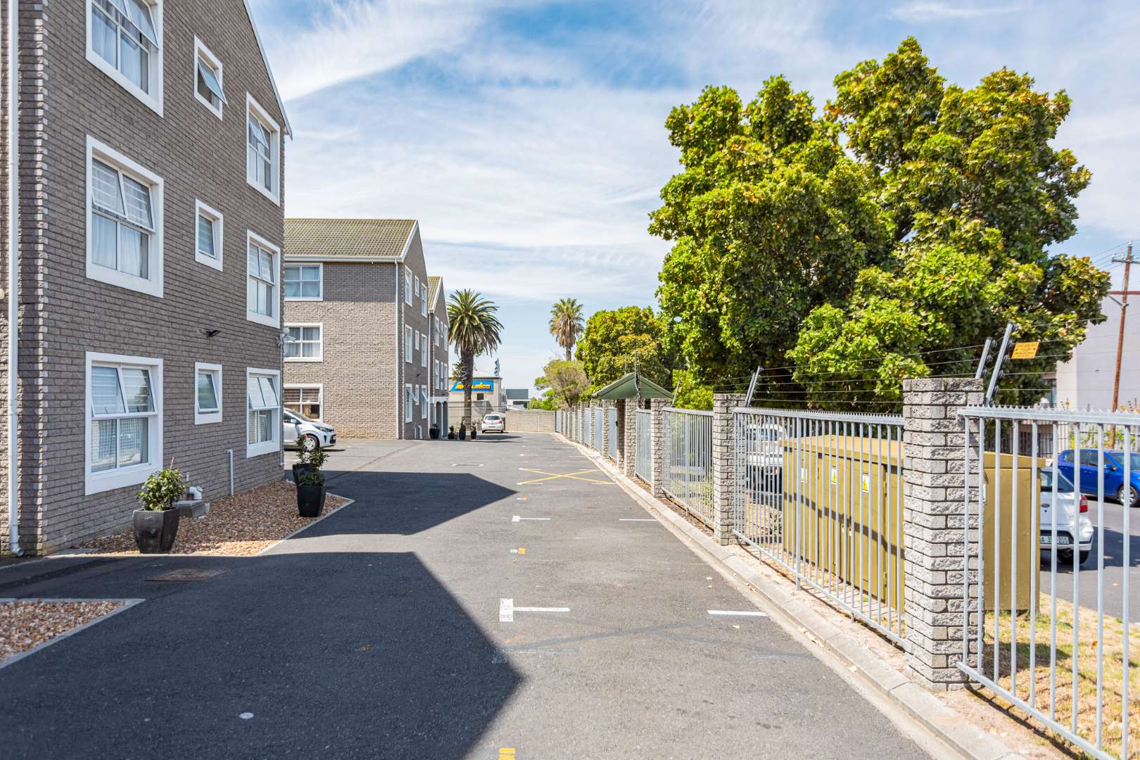 The apartment offers two well-appointed bedrooms, each fitted with sleek built-in cupboards that enhance the clean, modern aesthetic. A full bathroom, complete with a bath, shower, basin, and toilet, adds to the home’s sense of comfort and convenience. What truly sets this property apart is the rare luxury of three dedicated parking bays—an exceptional benefit that provides unmatched ease for households with multiple vehicles or frequent guests.