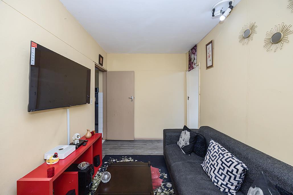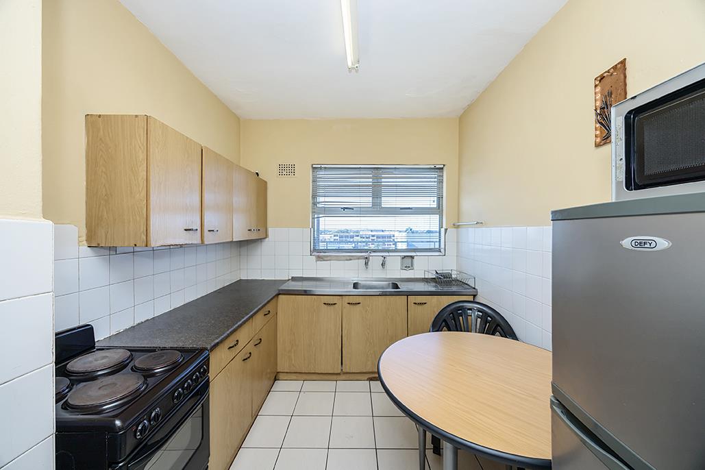 The unit features a spacious bedroom with a kitchen fitted with built-in cupboards. The second bedroom is a converted space, making it ideal for extra accommodation or a home office.