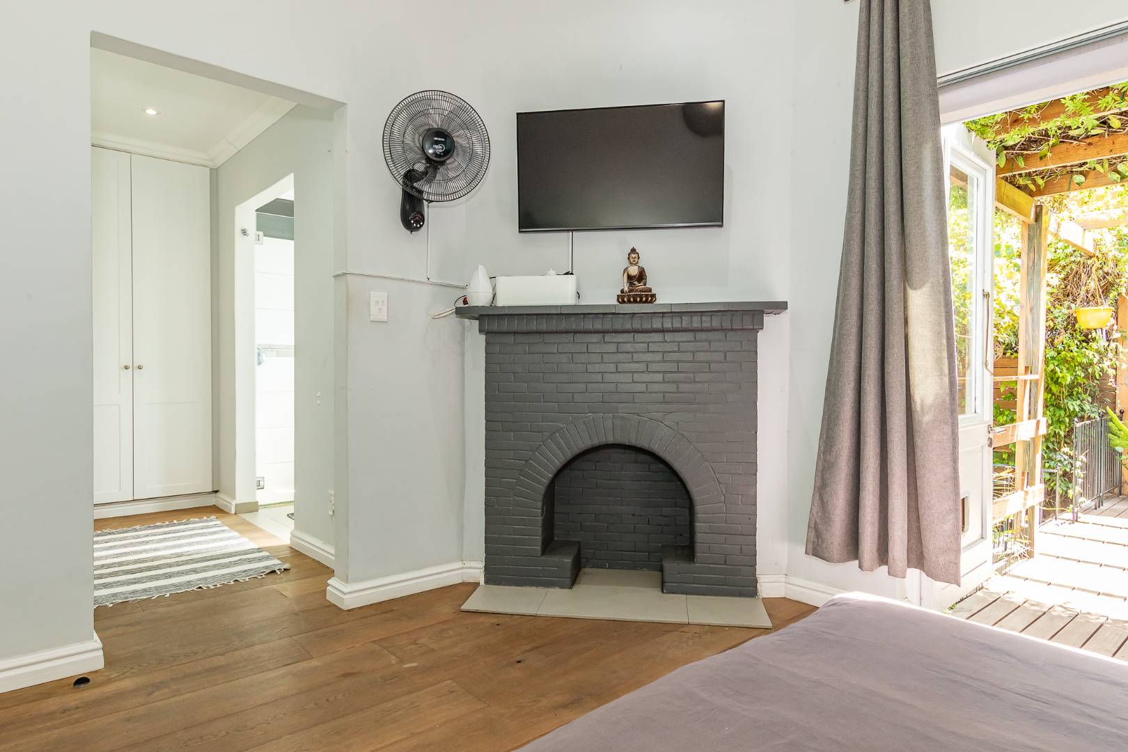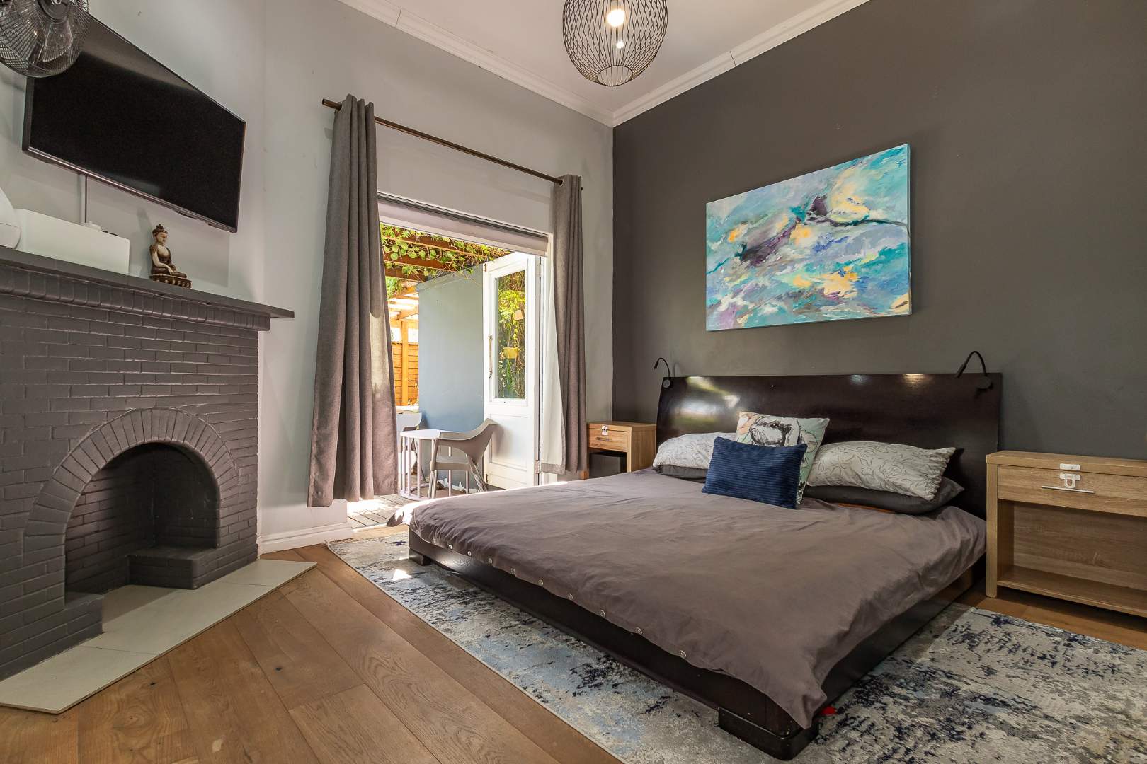 The main bedroom is like your own private sanctuary, with a built-in wood-burning fireplace, walk-through closet, and an en-suite bathroom as well as doors exiting onto a private courtyard.