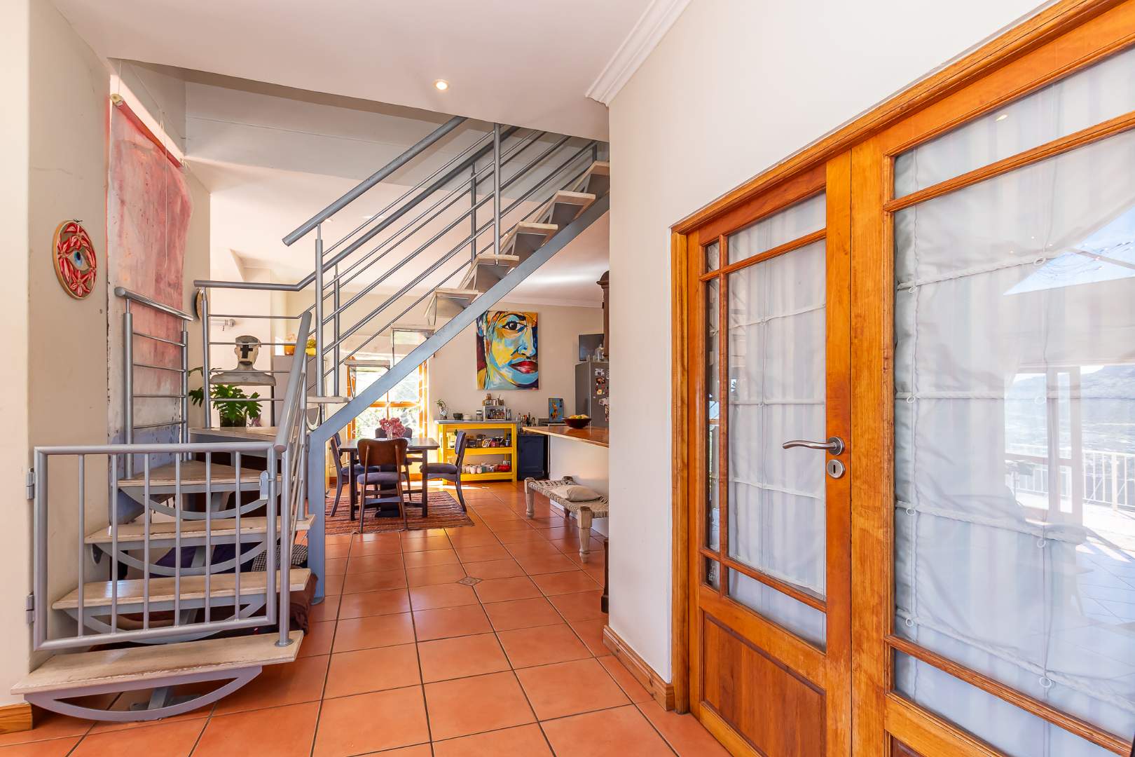 The Middle Level is open-plan living area with a cozy fireplace and balcony showcasing magnificent ocean views. A spacious kitchen fitted with built-in cupboards, gas stove, separate pantry, and appliance connections. The home is perfect for entertaining or enjoying relaxed family evenings.