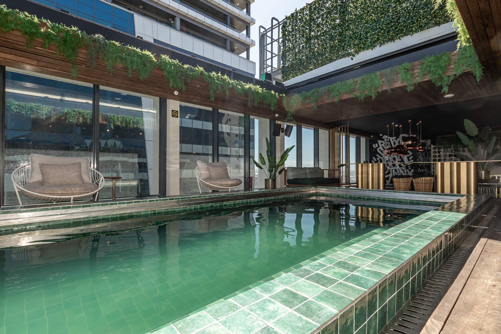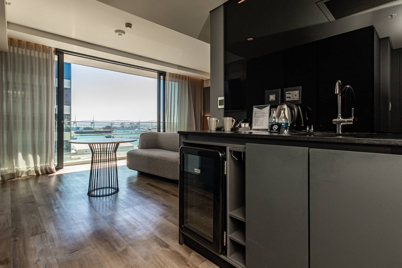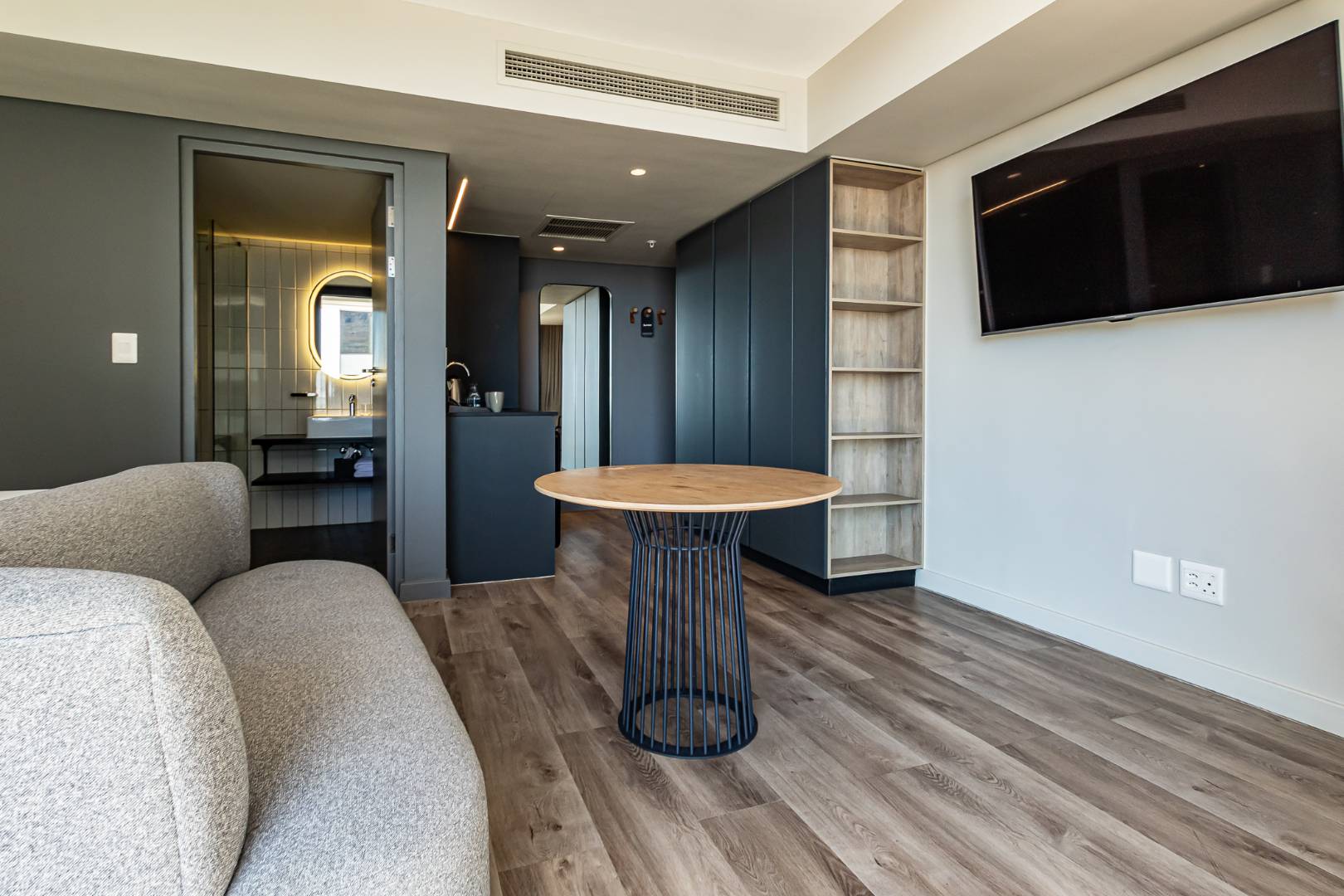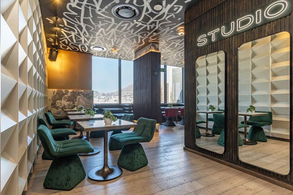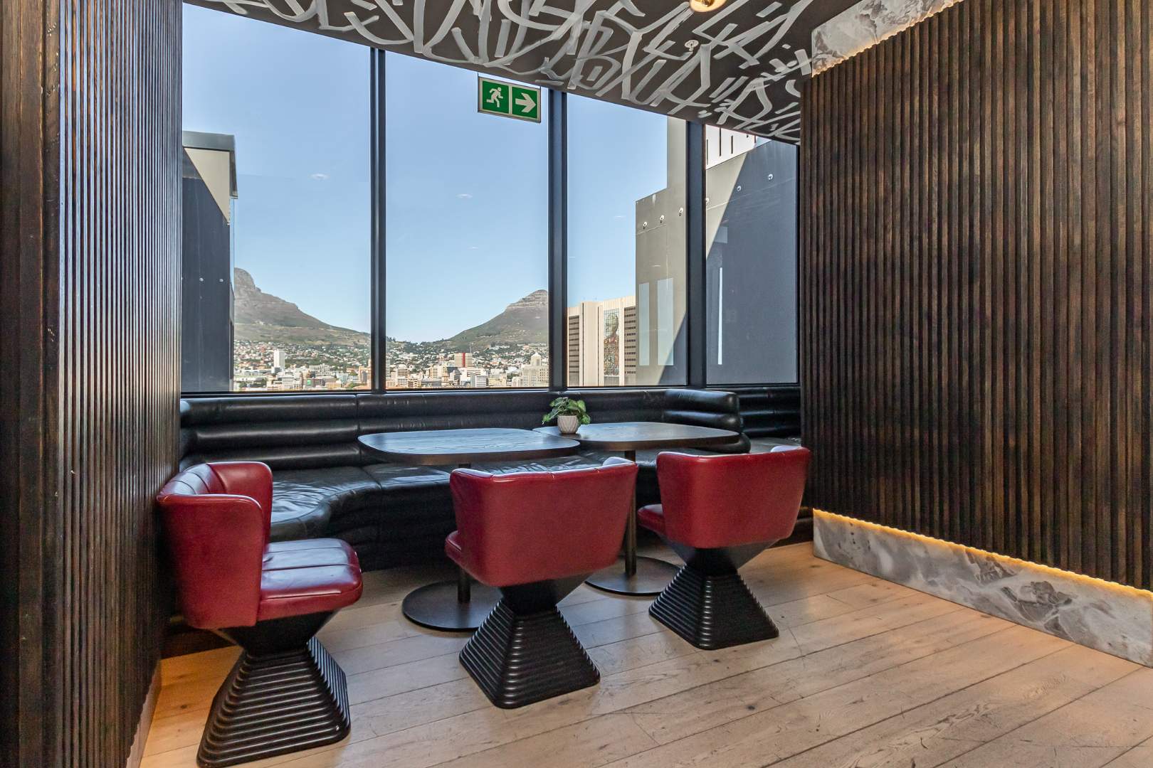Enjoy the exclusive rooftop studio bar and indoor pool area, where panoramic views of the ocean, city, and iconic Table Mountain await you.