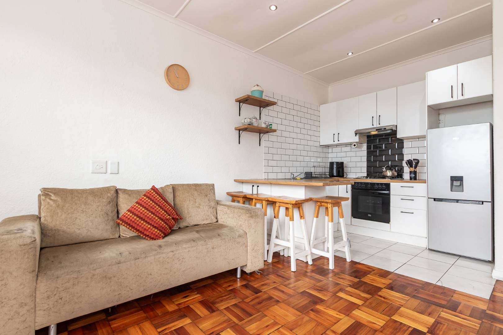 The lounge and kitchen are seamlessly integrated, creating a vibrant open-plan space perfect for entertaining and everyday living. The kitchen is a culinary haven, equipped with a gas hob, oven, and extractor fan, as well as generous cupboard space and capacity for a single fridge.
