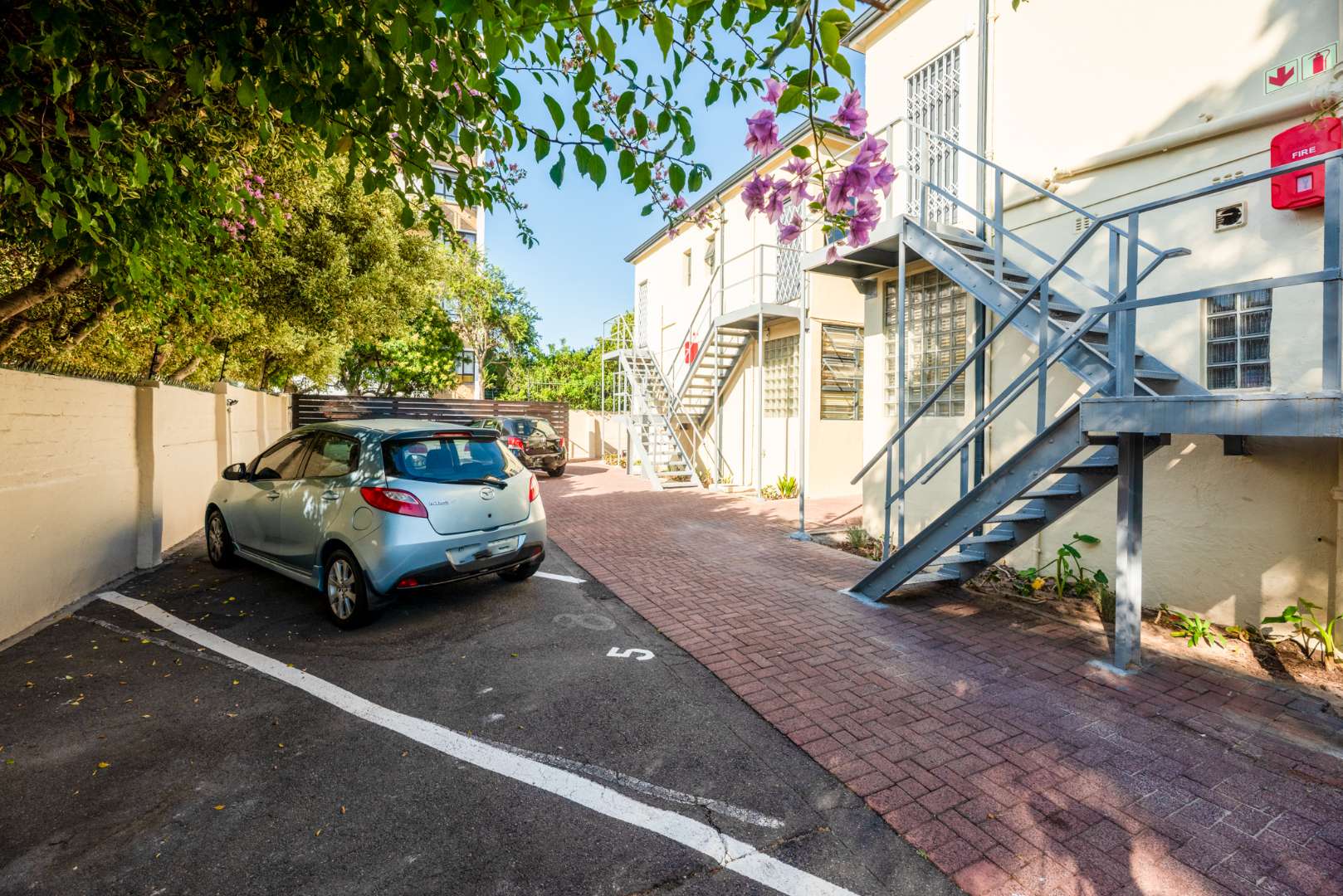 Security is well taken care of with a fully secured electric fence, a coded pedestrian gate with key tag access, and a dedicated parking space for added peace of mind.