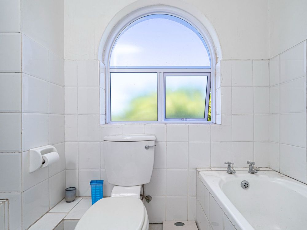 The full family bathroom is tiled to the ceiling, and has a Bath, Shower cubicle, Hand basin and Toilet.