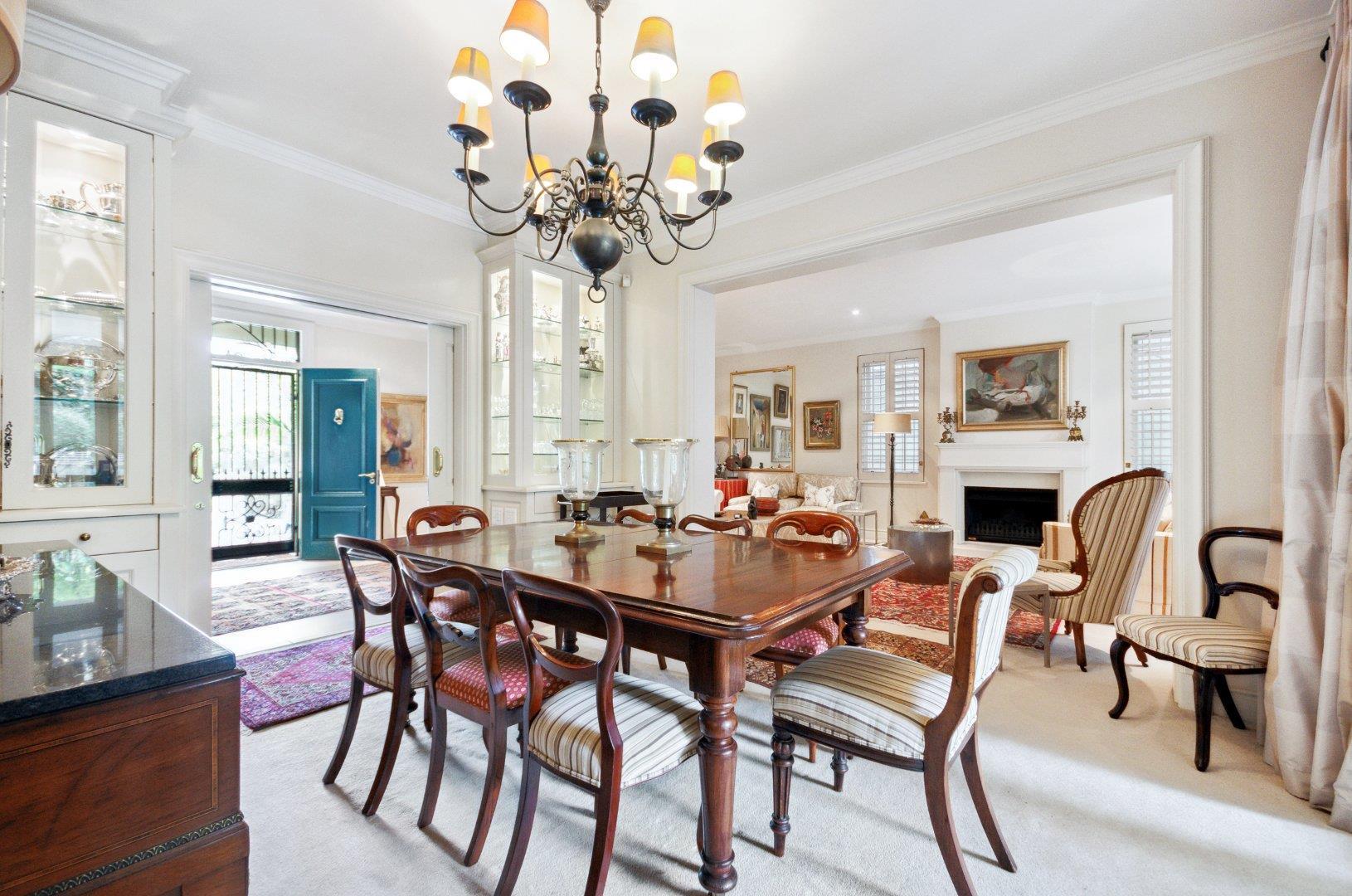 Other notable features include a laundry chute for transferring washing from upstairs to downstairs, vacuum wall plugs for easy cleaning, high walls, a security entrance gate, beams, ADT response burglar alarms, trellidors, and CCTV for added security. American shutters are installed throughout the house, and luxurious curtains are included in the price. This meticulously designed house boasts top-quality fittings and finishes.