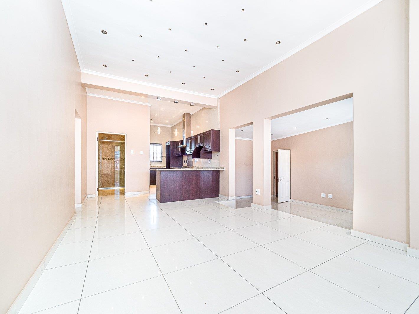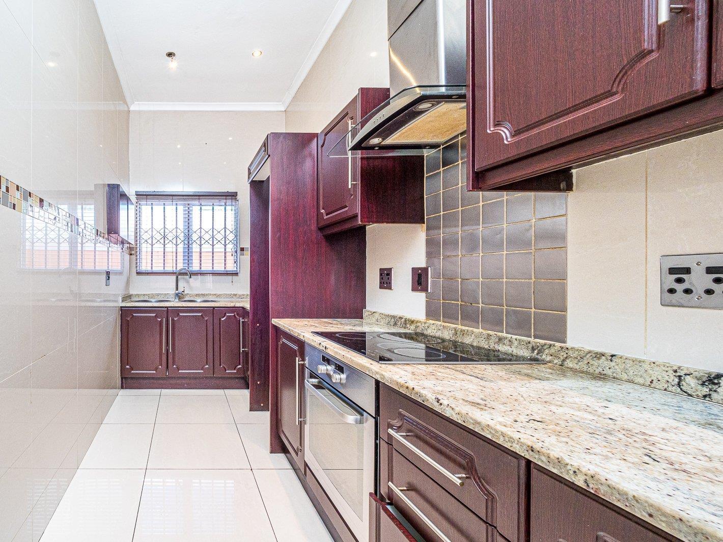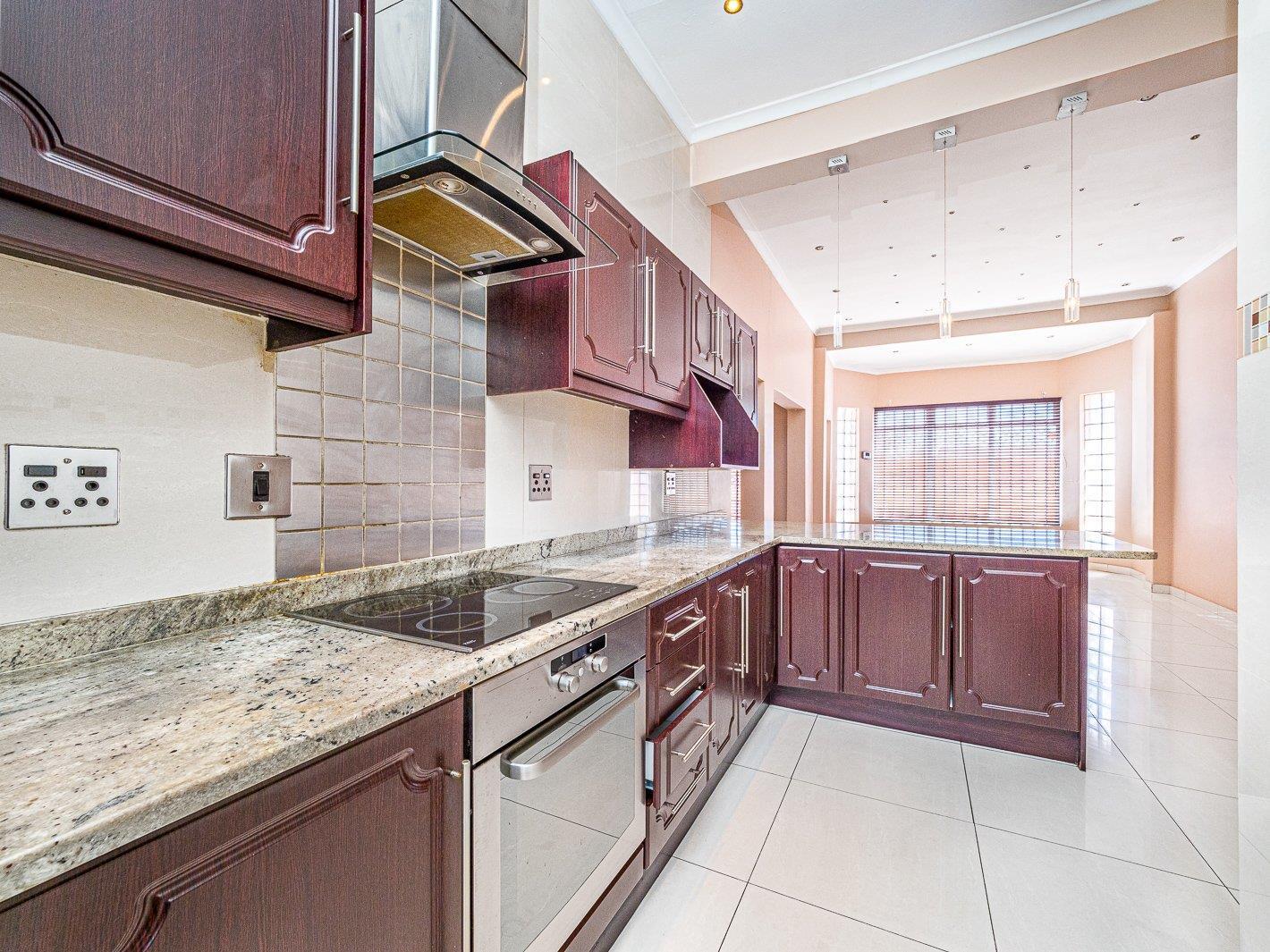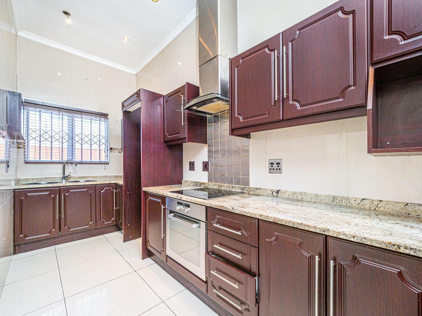 This modern semi offers high ceilings n open plan living with the lounge and dining room leading to the kitchen. The kitchen is contemporary with ample built-in cupboards, electric stove and undercounter oven.
