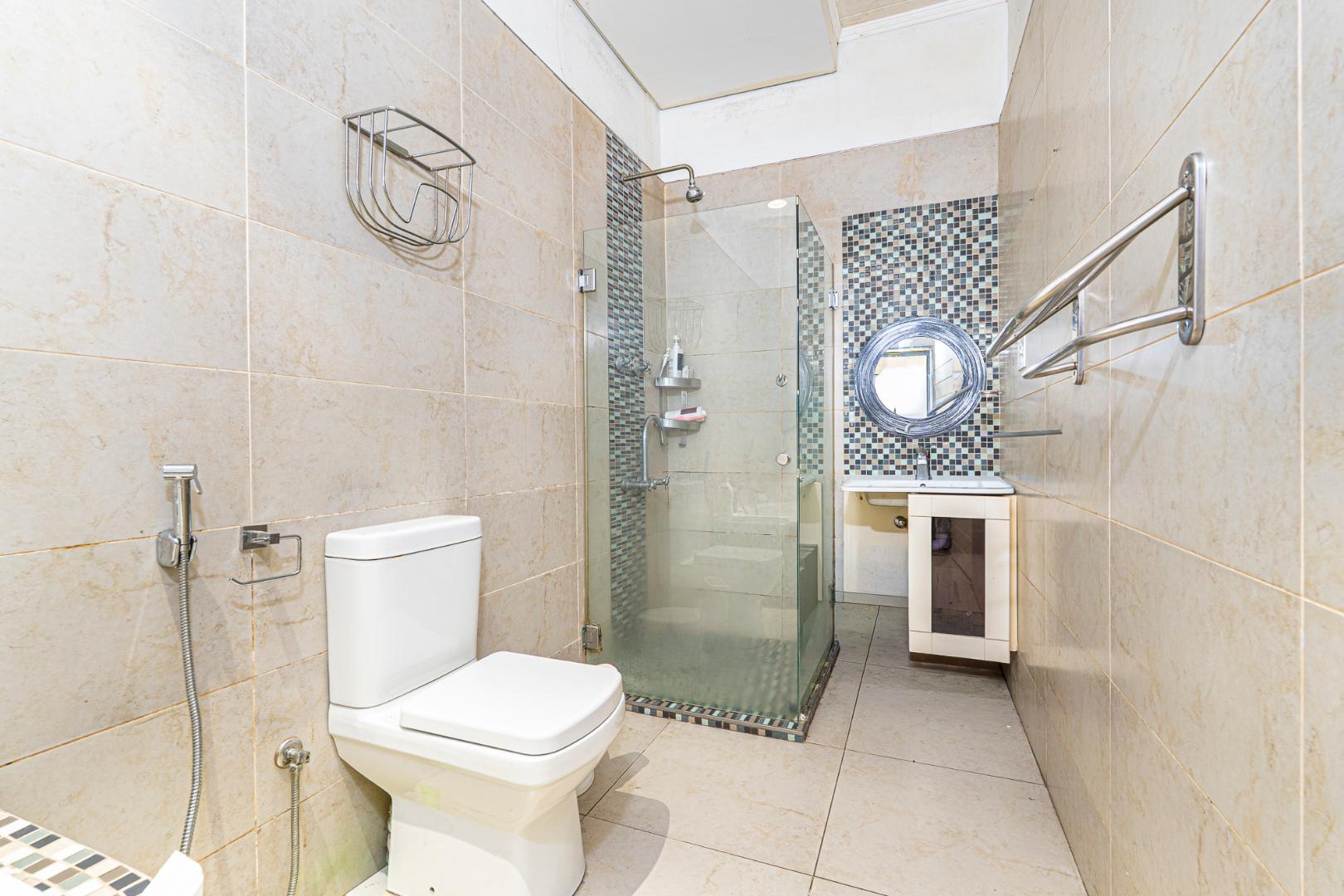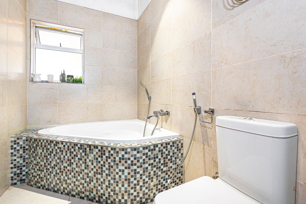 There are 3 generous bedrooms with built-in cupboards, blinds, and wooden floors. The main bedroom includes an en-suite bathroom. Both bathrooms are fully tiled with showers, and one includes a relaxing corner bath.