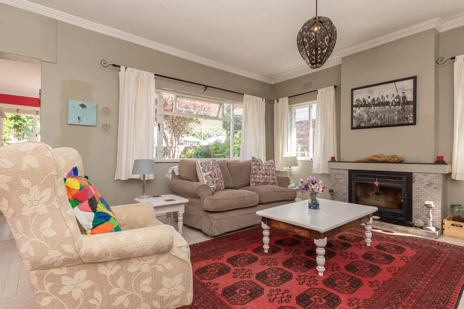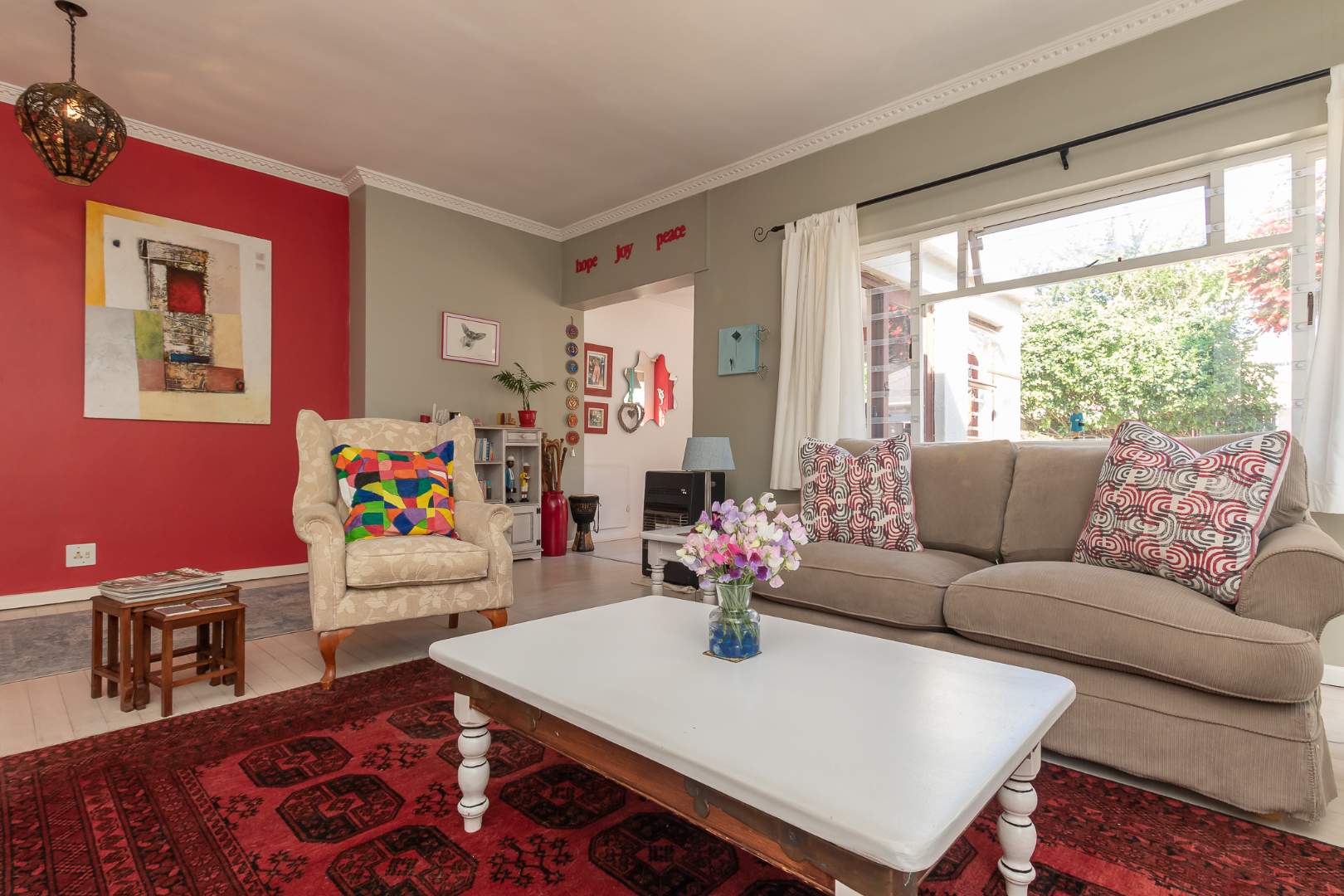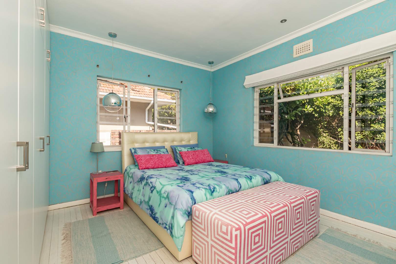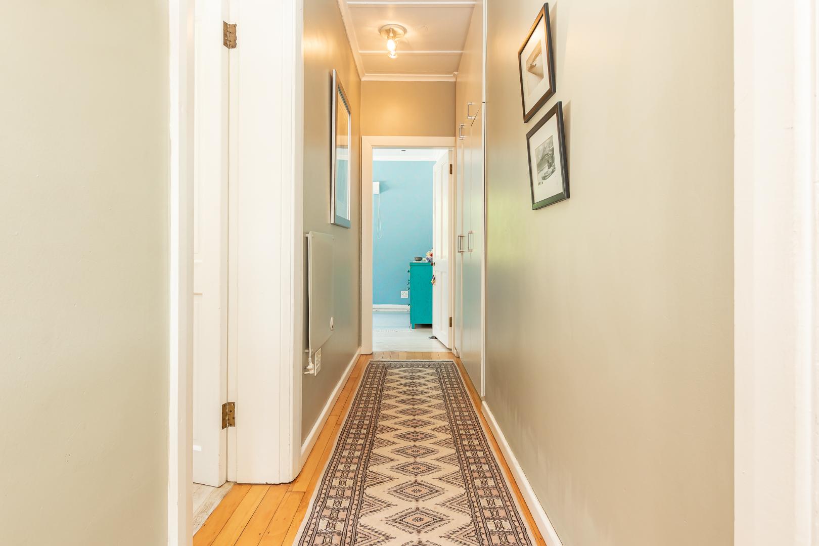 Upon entering the main house, you are enveloped in a sense of warmth and care that resonates throughout. The functional layout of the property features 3 bedrooms, each adorned with original wooden floors. Two of the bedrooms are equipped with built-in cupboards, while one is been utilized as an office/study that opens up to the back garden. The passage connecting the bedrooms and bathroom boasts linen cupboards for added storage convenience.