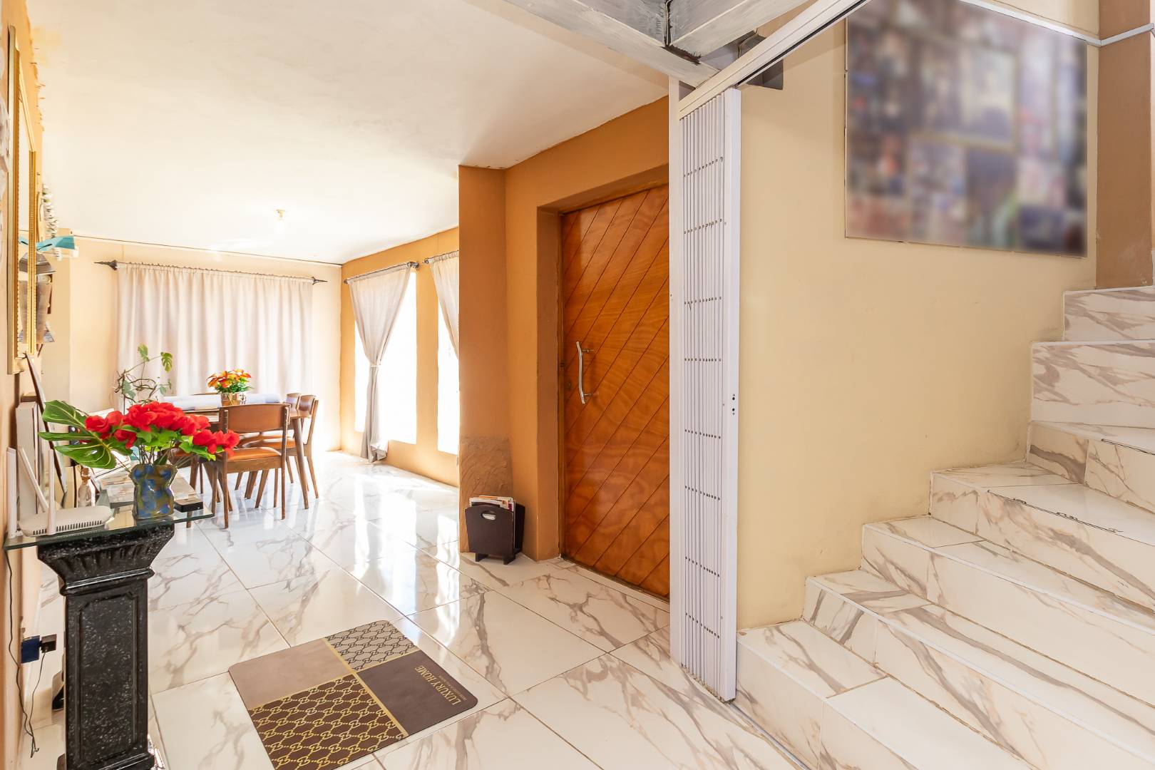On the first floor, a welcoming entrance hall leads into a spacious lounge filled with natural light.