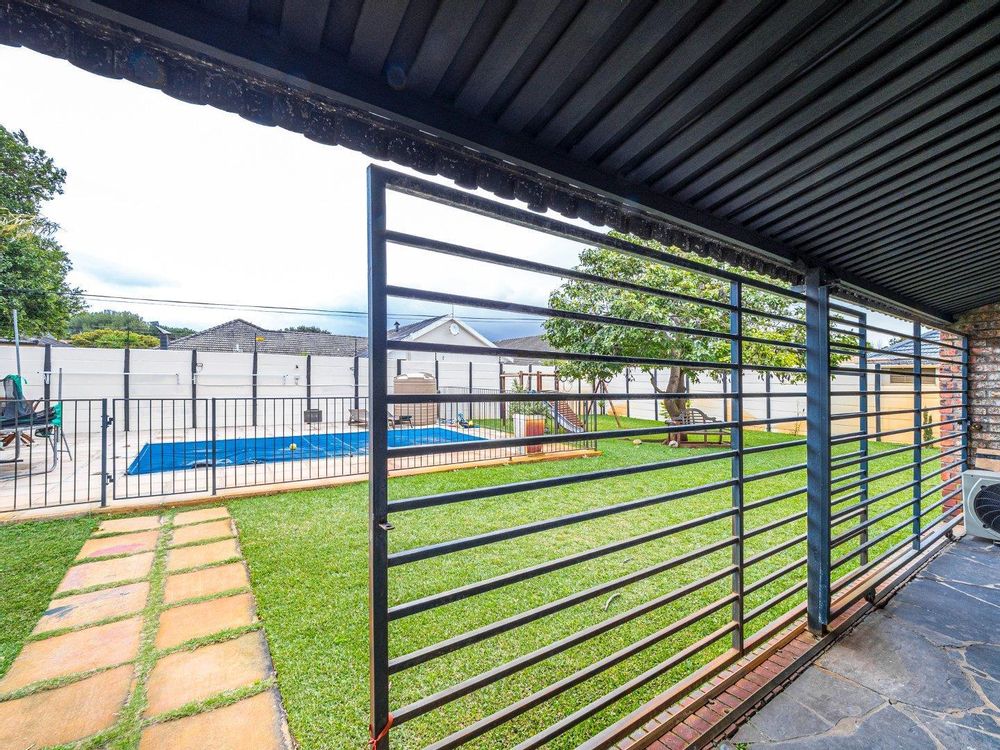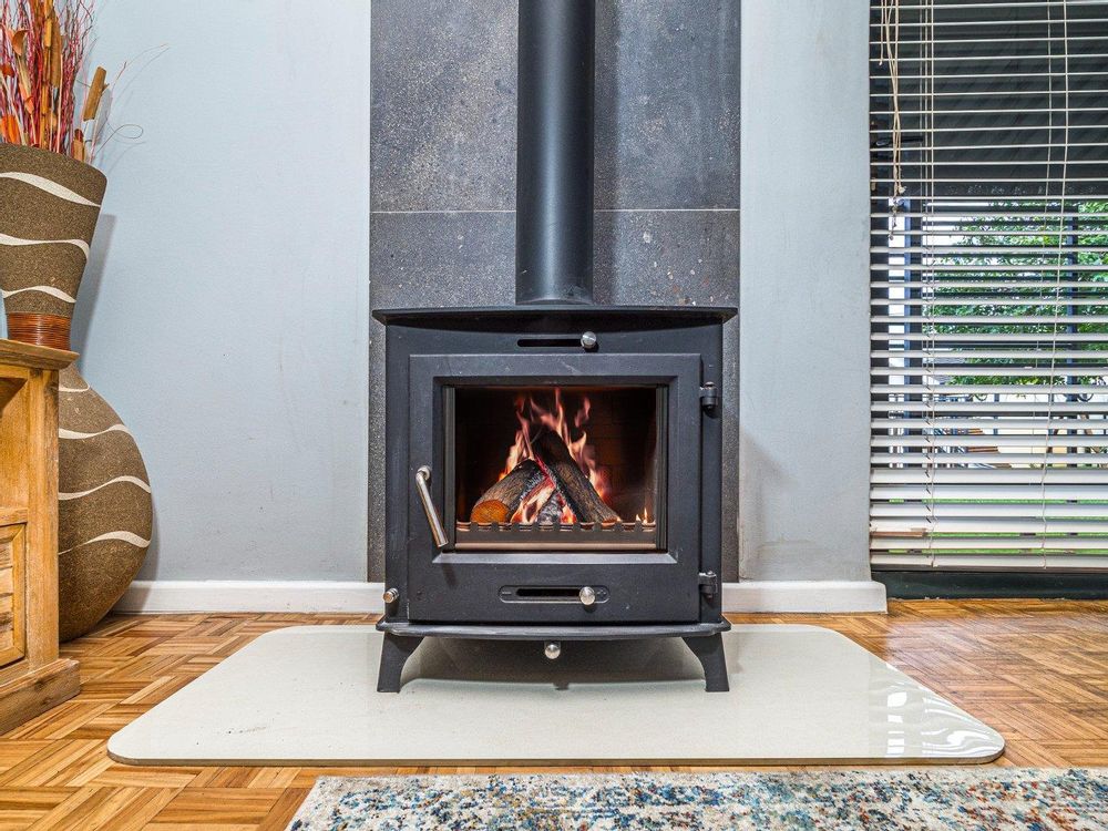 The lounge has a lovely wood burning fireplace, overlooking the lush private garden with pool,real grass and trees.