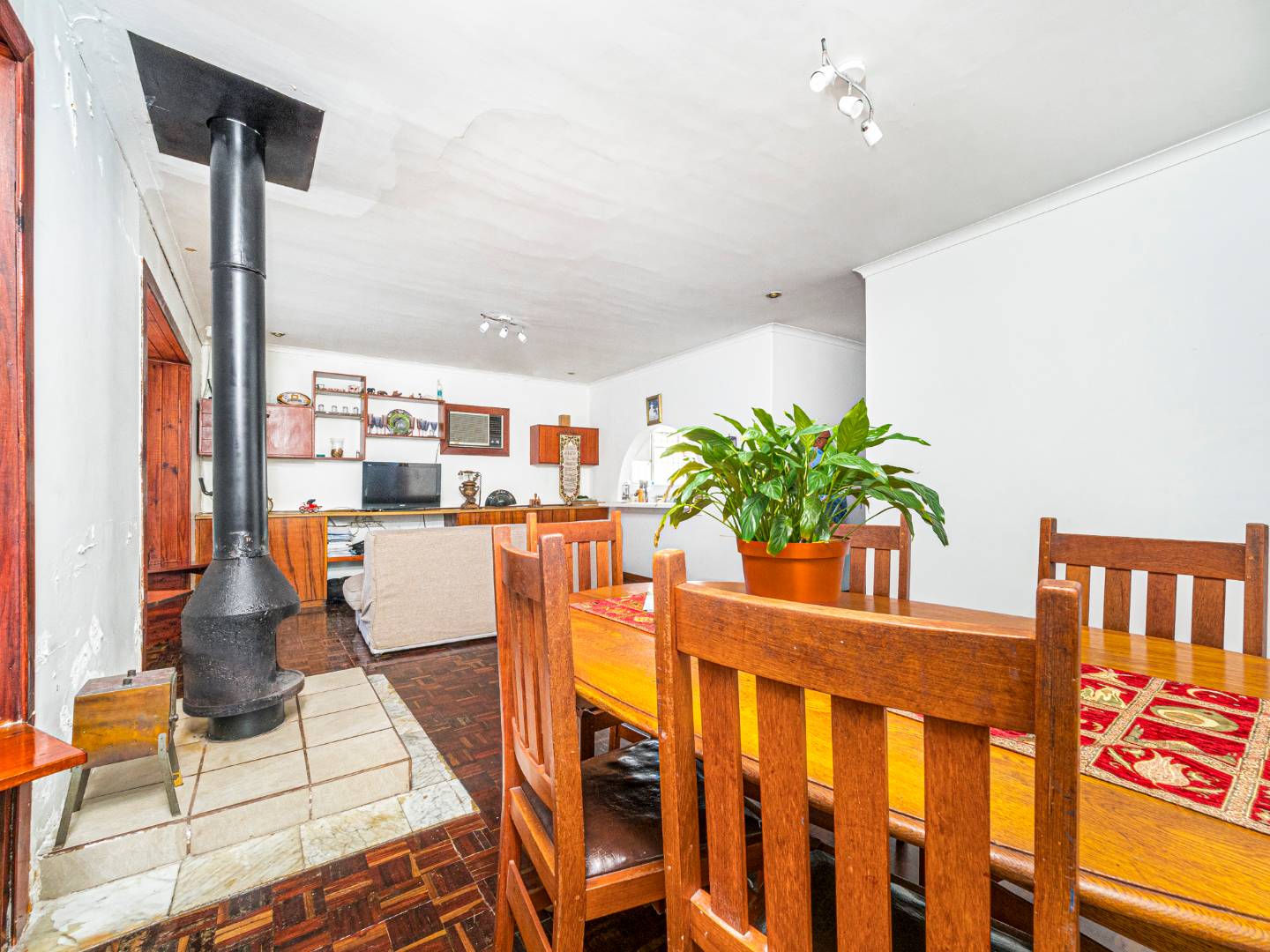The dining area has an open nook to a kitchen that has ample cupboard space. This unique property has a separate bathroom with shower and guest loo.