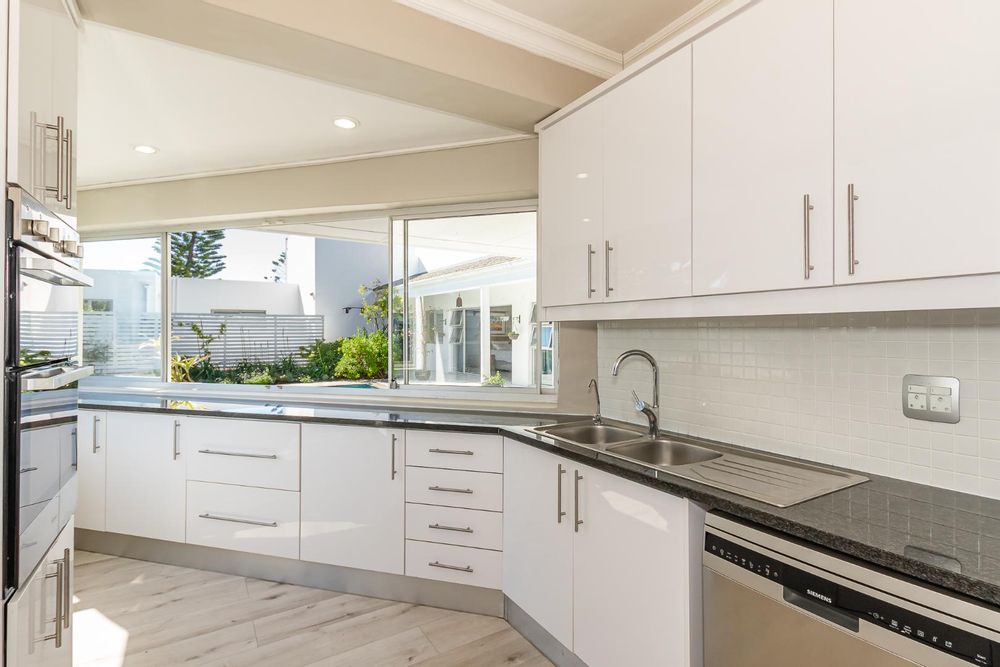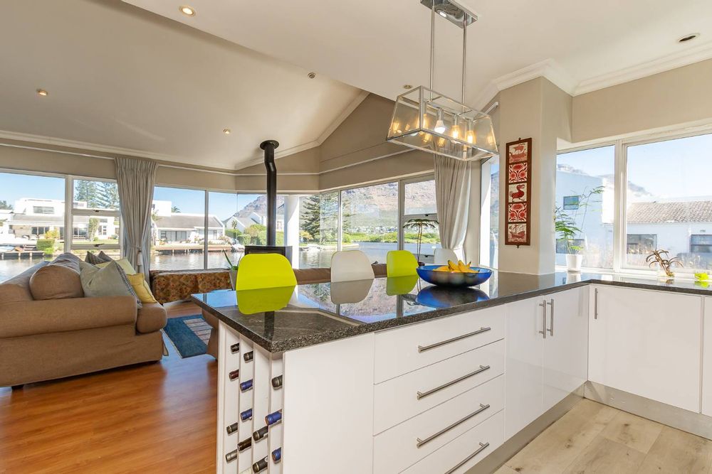 The modern kitchen is a cook’s delight, complete with abundant windows to enjoy the view and an easy flow to the pool and entertainment area. On cooler evenings, cozy up around the fireplace in the lounge.