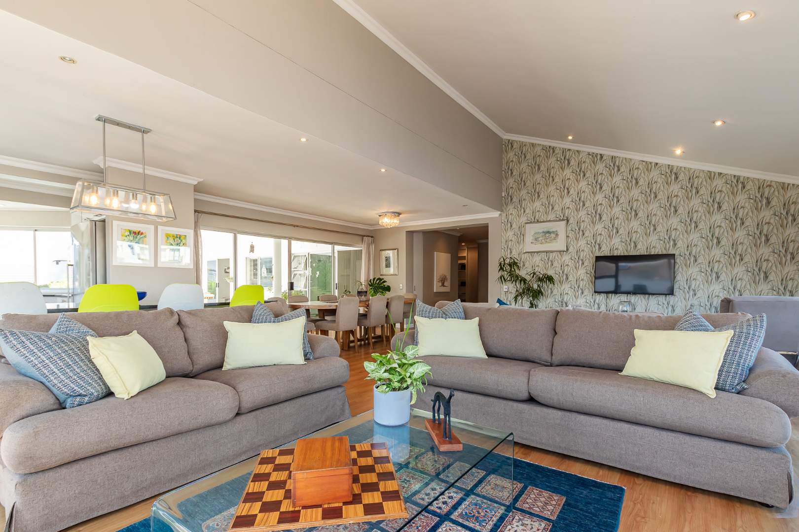 Designed with relaxed family living and effortless entertaining in mind, this no-steps home features an open-plan lounge and dining room that flows seamlessly onto a generous wooden deck—perfect for soaking in the views or enjoying evening sundowners. Large windows throughout the home flood the interiors with natural light and frame the ever-changing scenery outside.