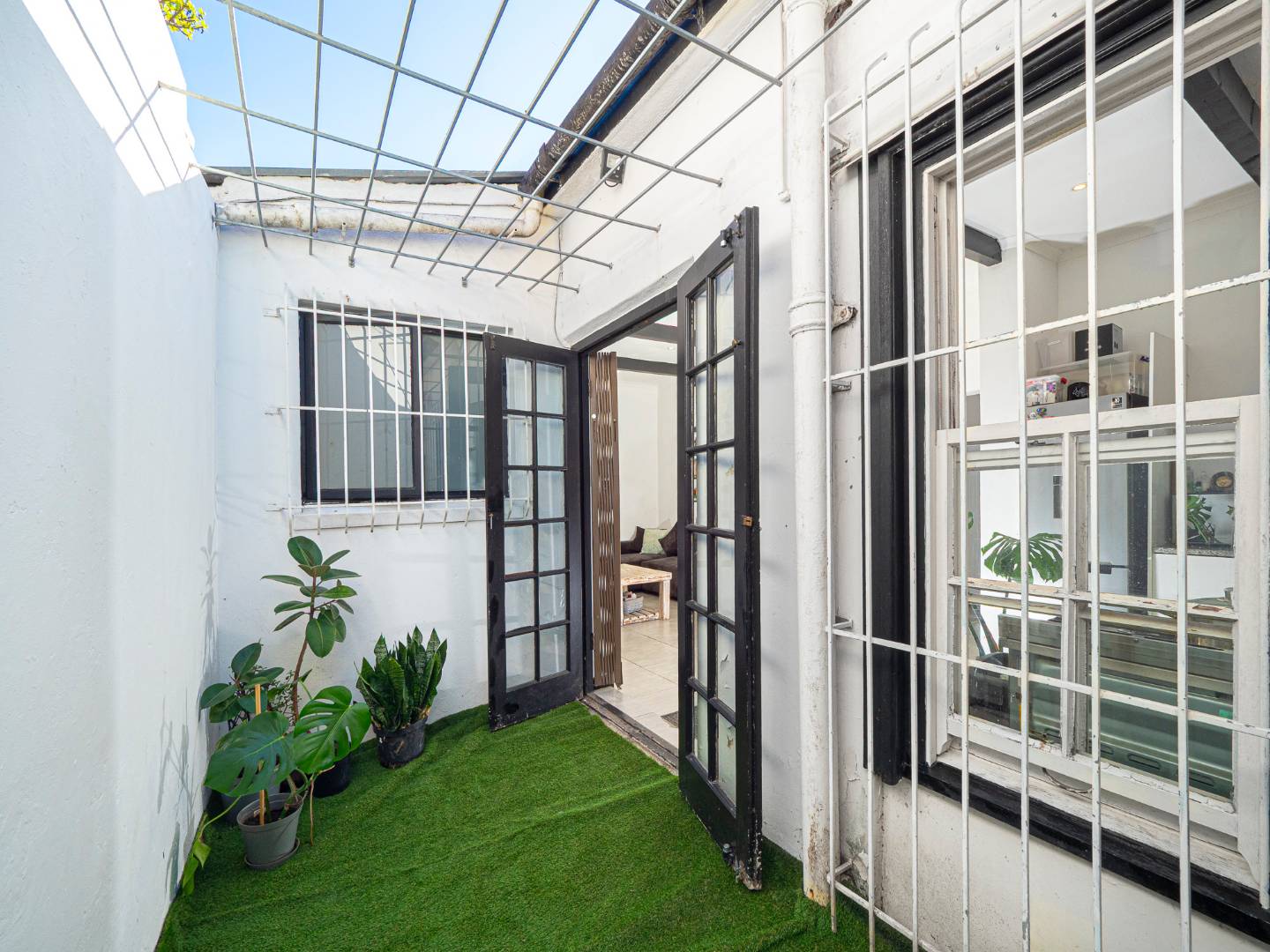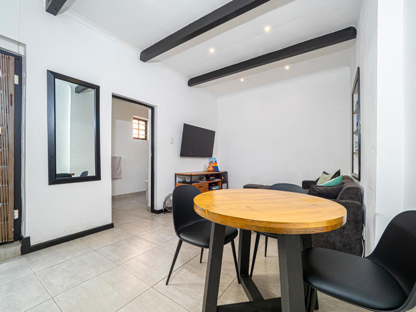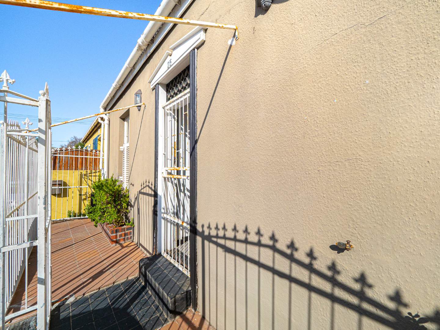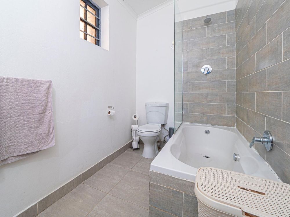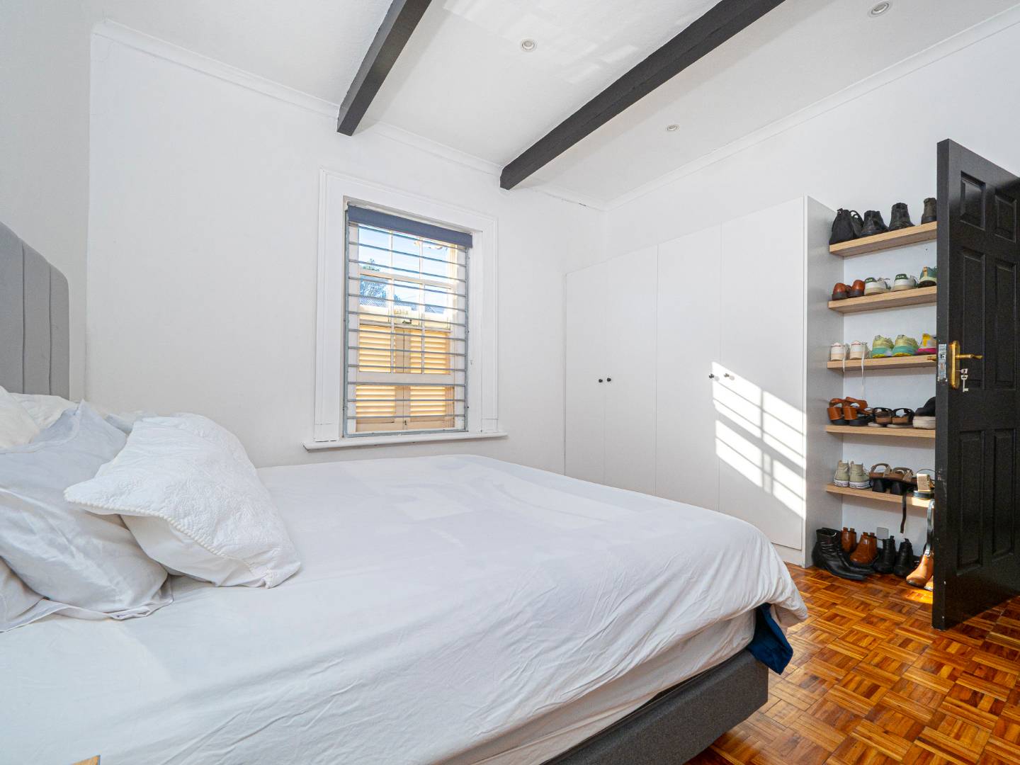 Both bedrooms are spacious with beautiful high ceilings, Oregon wooden floors and Sash windows with shutters as well as burglar bars.