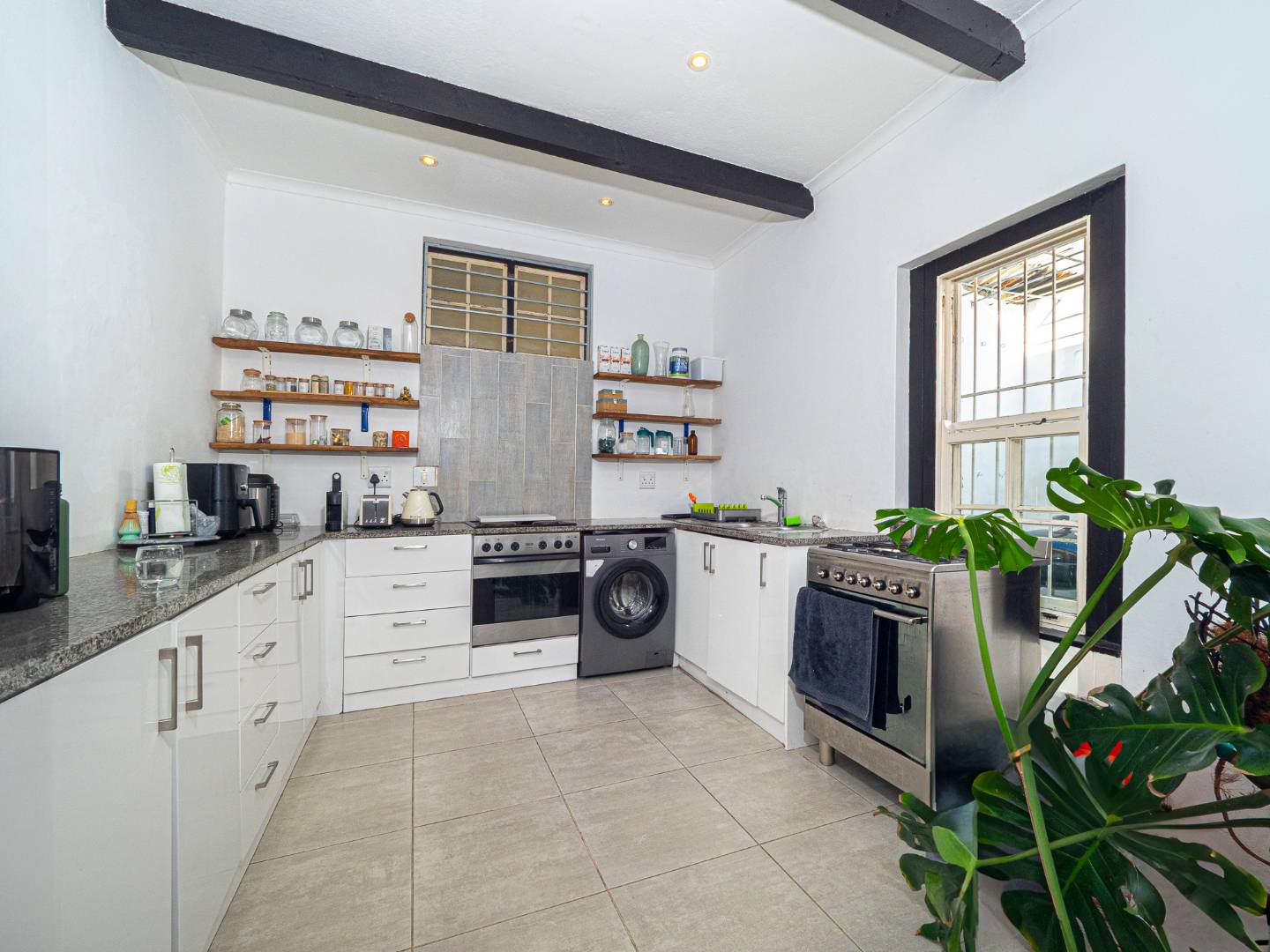 The kitchen is lovely. Its fully fitted, tiled and its open plan with granite counter tops. Lovely sunny and secured courtyard via French doors.