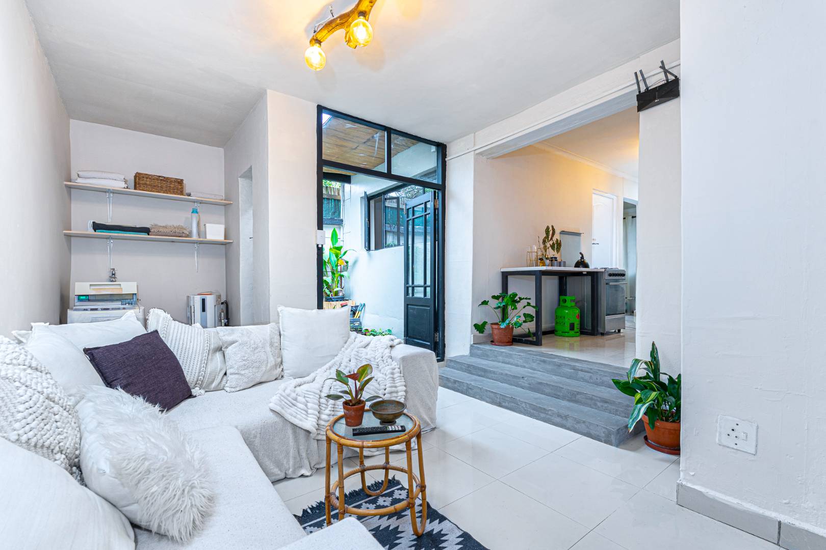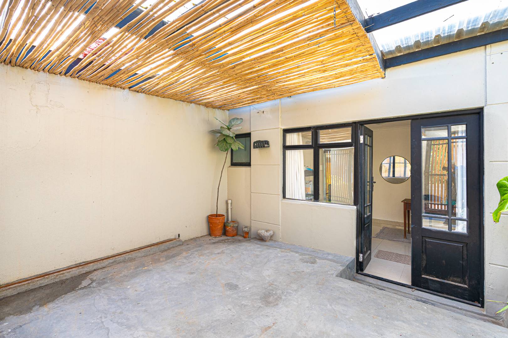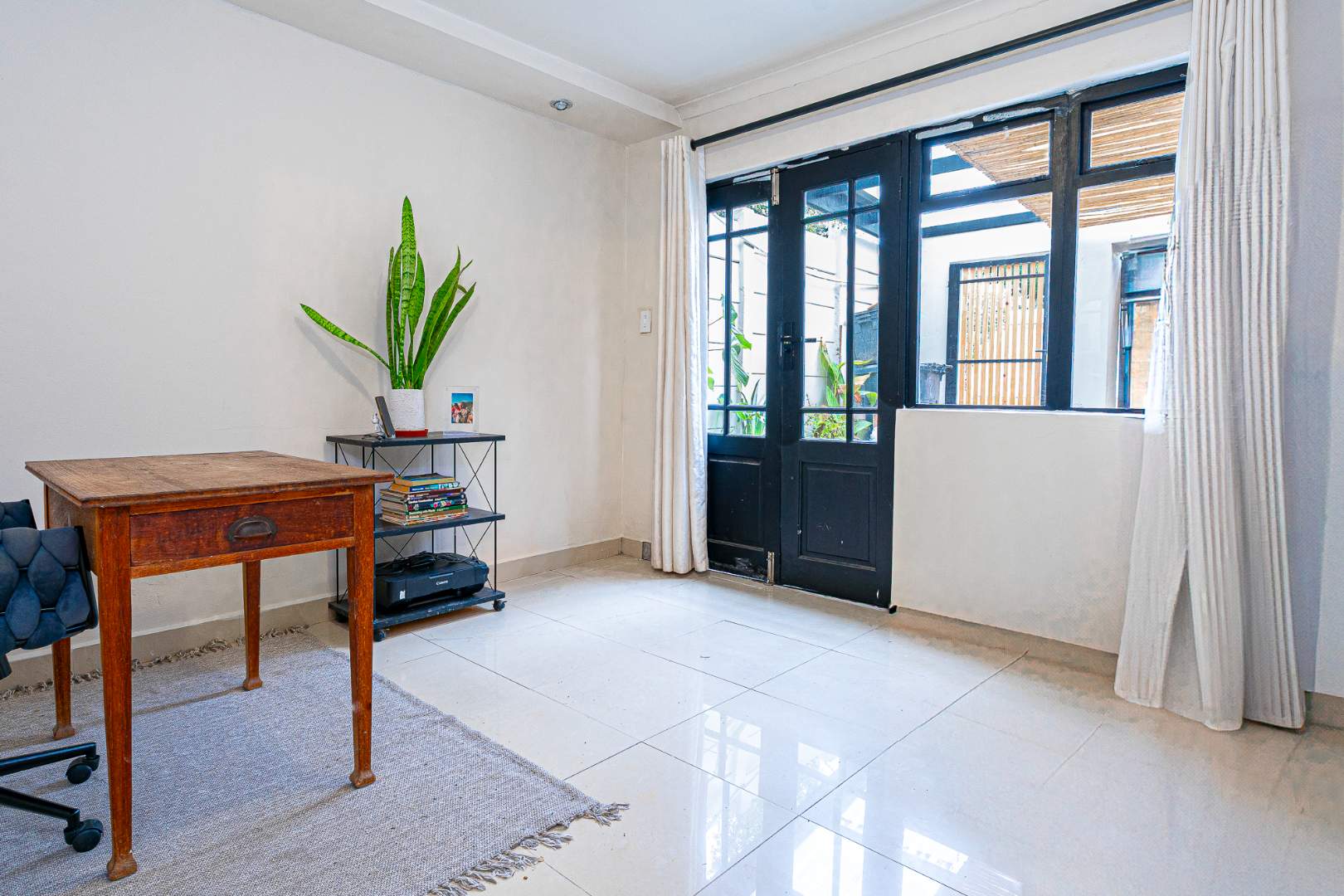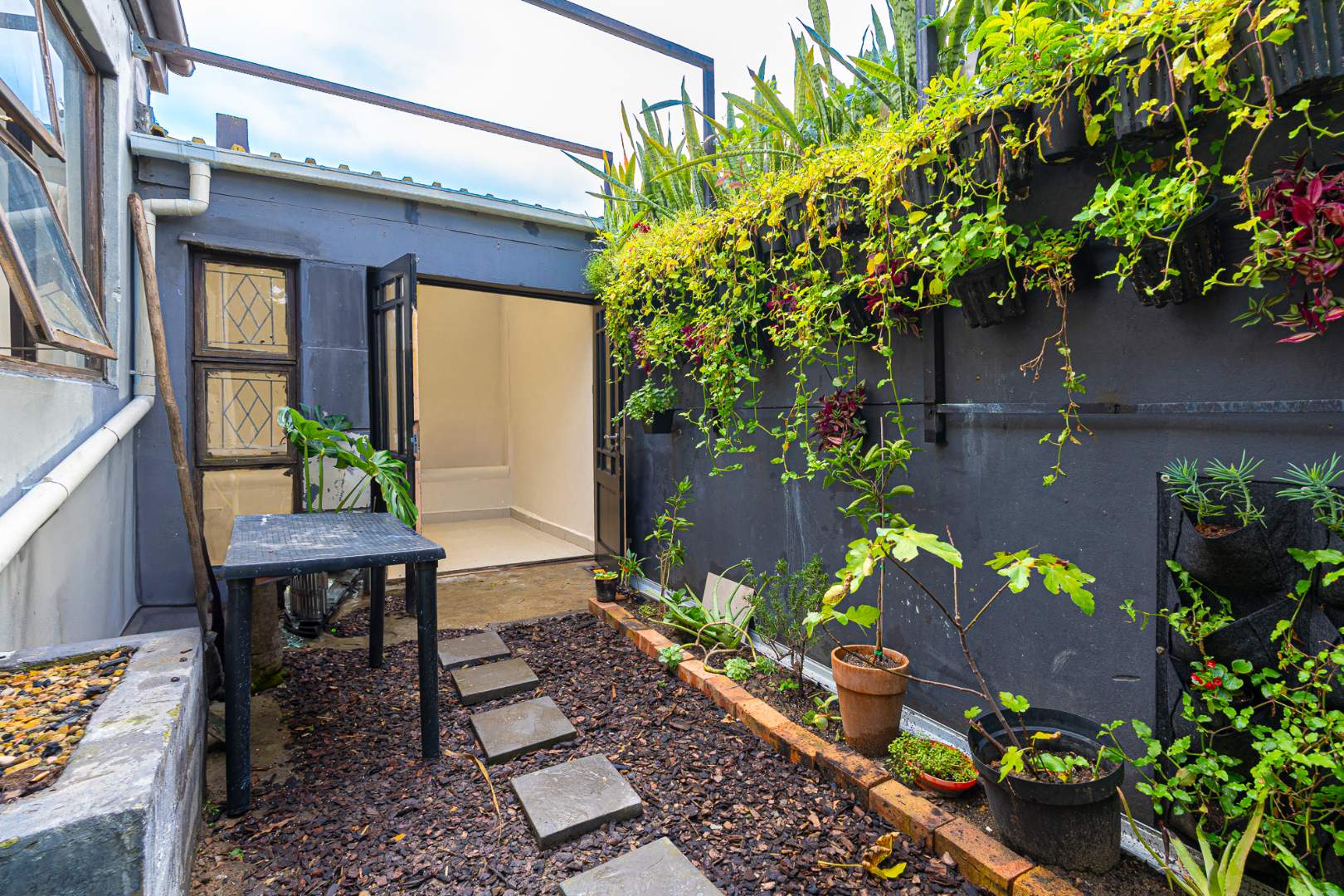 The final room presents an opportunity to create a 3rd single bedroom, second study or hobby space. This room is sunny and bright a wonderful as an artist studio and opens to the larger garden space. The garden is enhanced with vertical planting and has room for a braai and table seating.