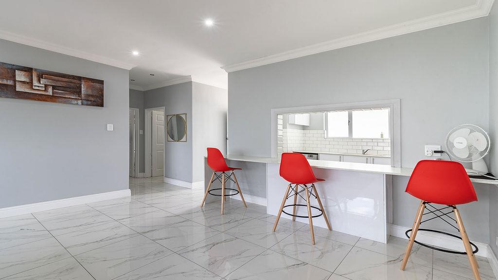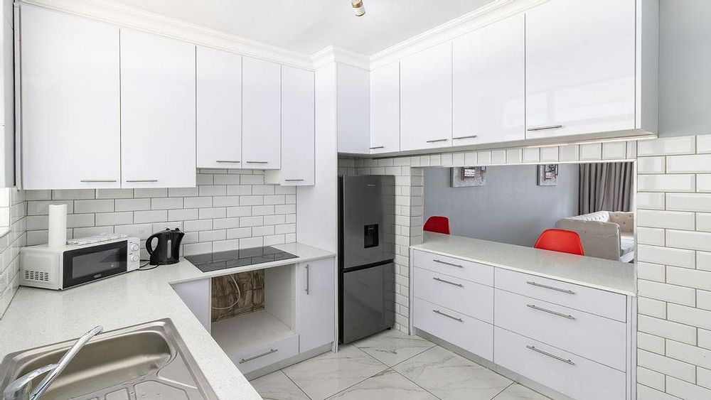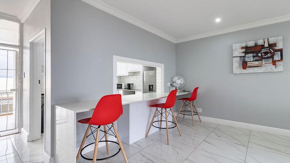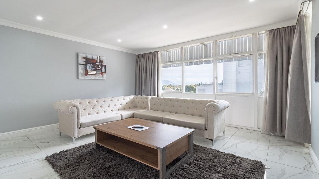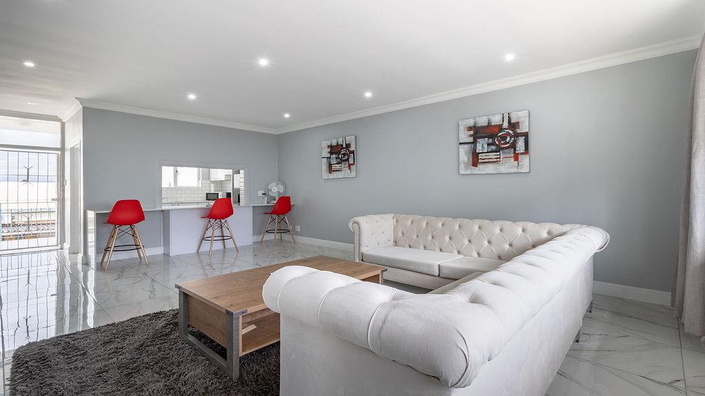 Step into the open-plan living area, where natural light pours in, leading seamlessly to a balcony with breathtaking views of Table Mountain. Here, your home becomes a personal retreat, reminiscent of a luxury holiday resort.