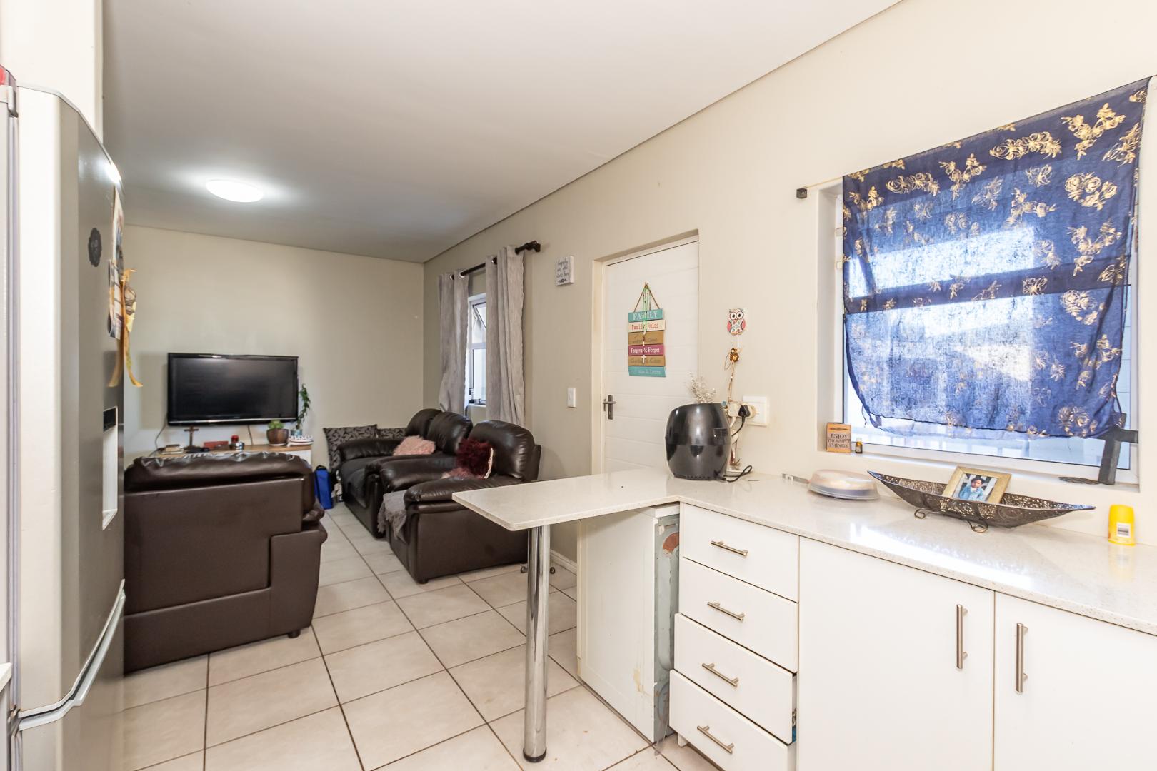 The main bedroom boasts built-in cupboards and tiled flooring, providing a low-maintenance and modern finish. The fully fitted bathroom is neatly tiled and includes a shower, toilet, and basin.