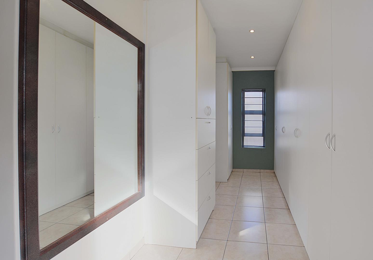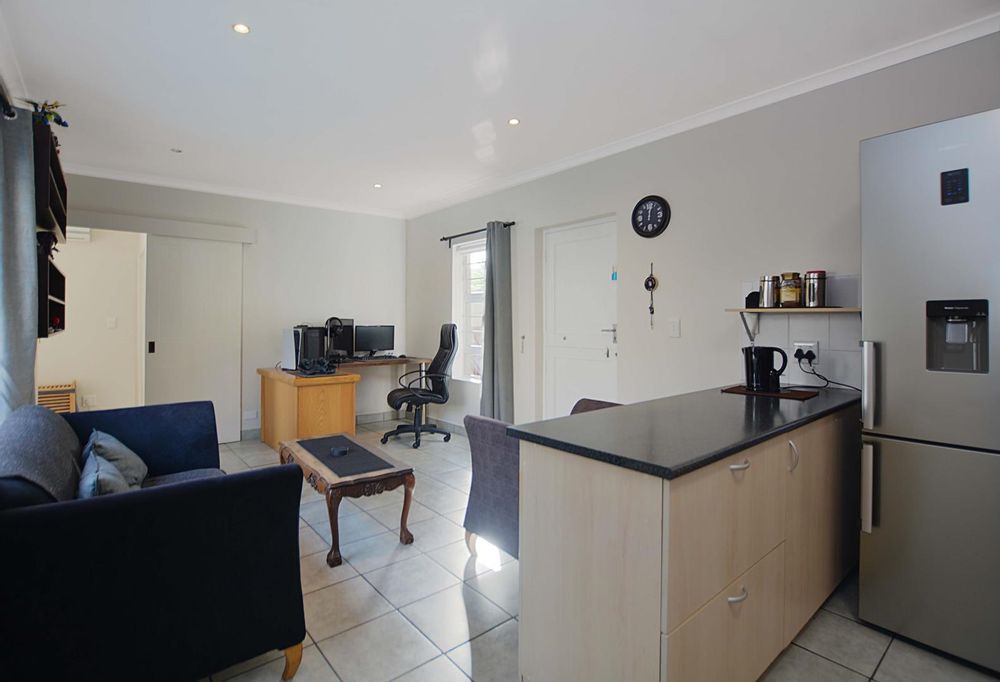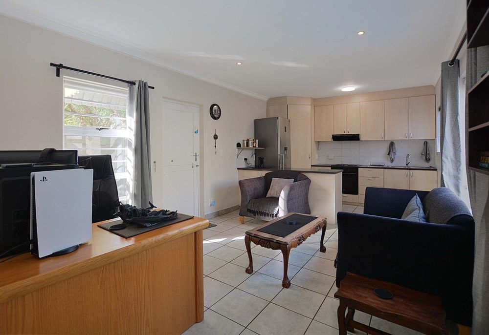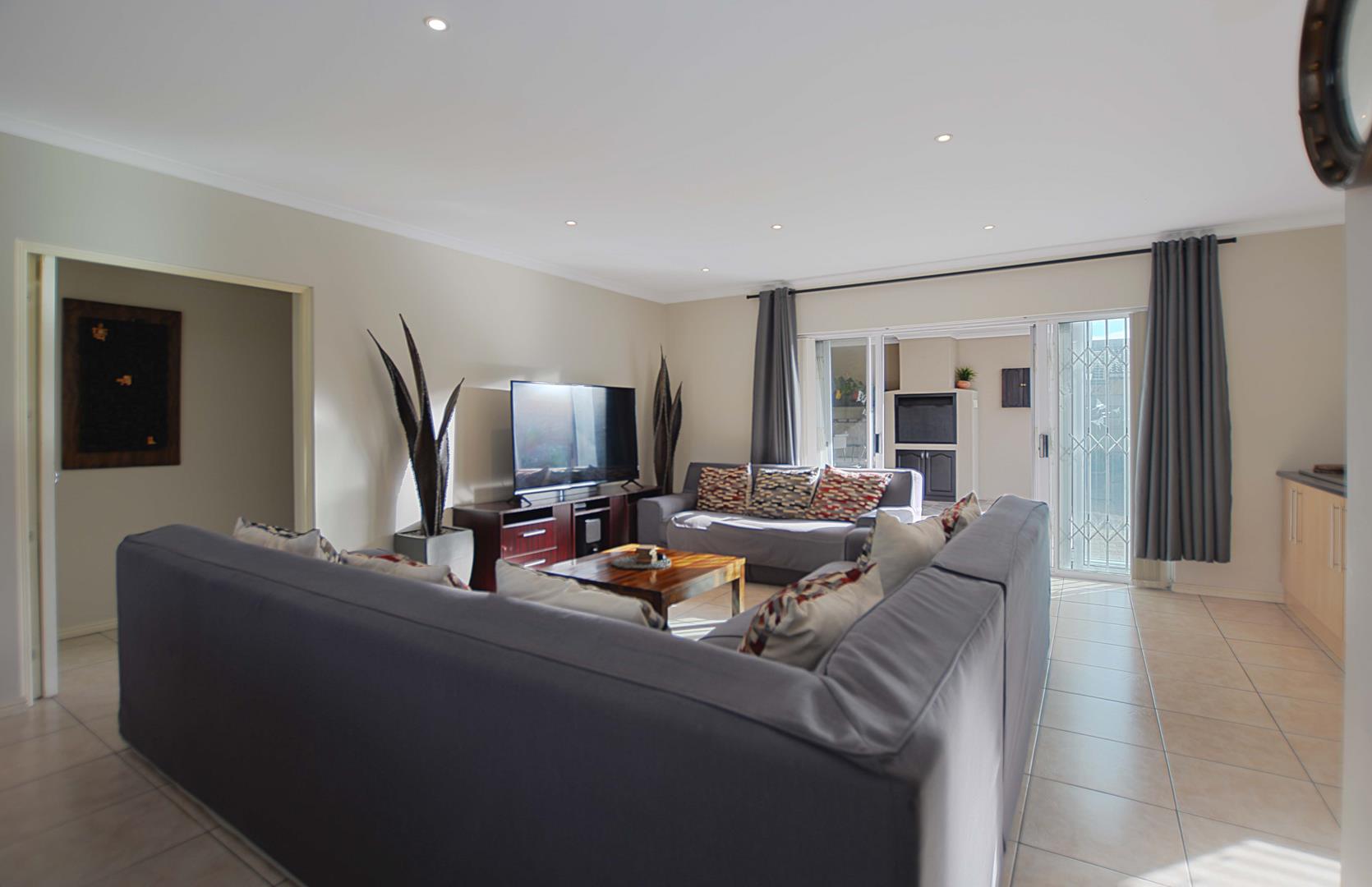 Above the triple garage, the first flatlet provides a private retreat with a bathroom, combined living and bedroom area, and an adjoining gym or workspace—ideal for guest accommodation or a home office. The second flatlet is a well-appointed unit featuring an air-conditioned bedroom with built-in cupboards, an integrated bathroom, and an open-plan kitchen and lounge. Additional amenities include a storeroom, an 8 KW solar system, burglar bars, a safety gate, and an electric fence, ensuring security and sustainability. The back garden is thoughtfully designed with irrigation systems, play areas for children and pets, and dual JoJo tanks for water storage, enhancing the property’s appeal and adaptability for various needs and aspirations.