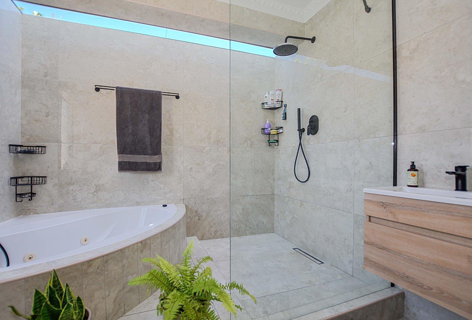 Upstairs the large fourth bedroom can be used for the extended family, older kids or an office. It has an en-suite bathroom with a shower, basin and toilet.